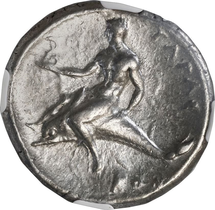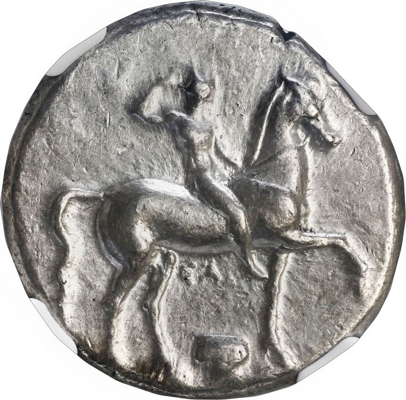 ANCIENT GREEK, Calabria, Taras, AR didrachm, 302-280 BC, NGC Ch VF.
