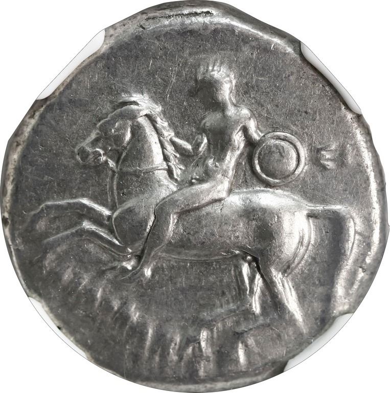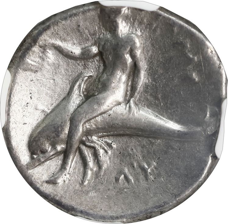 ANCIENT GREEK, Calabria, Taras, AR didrachm, Philon, magistrate, 302-280 BC, "boy on dolphin," NGC C