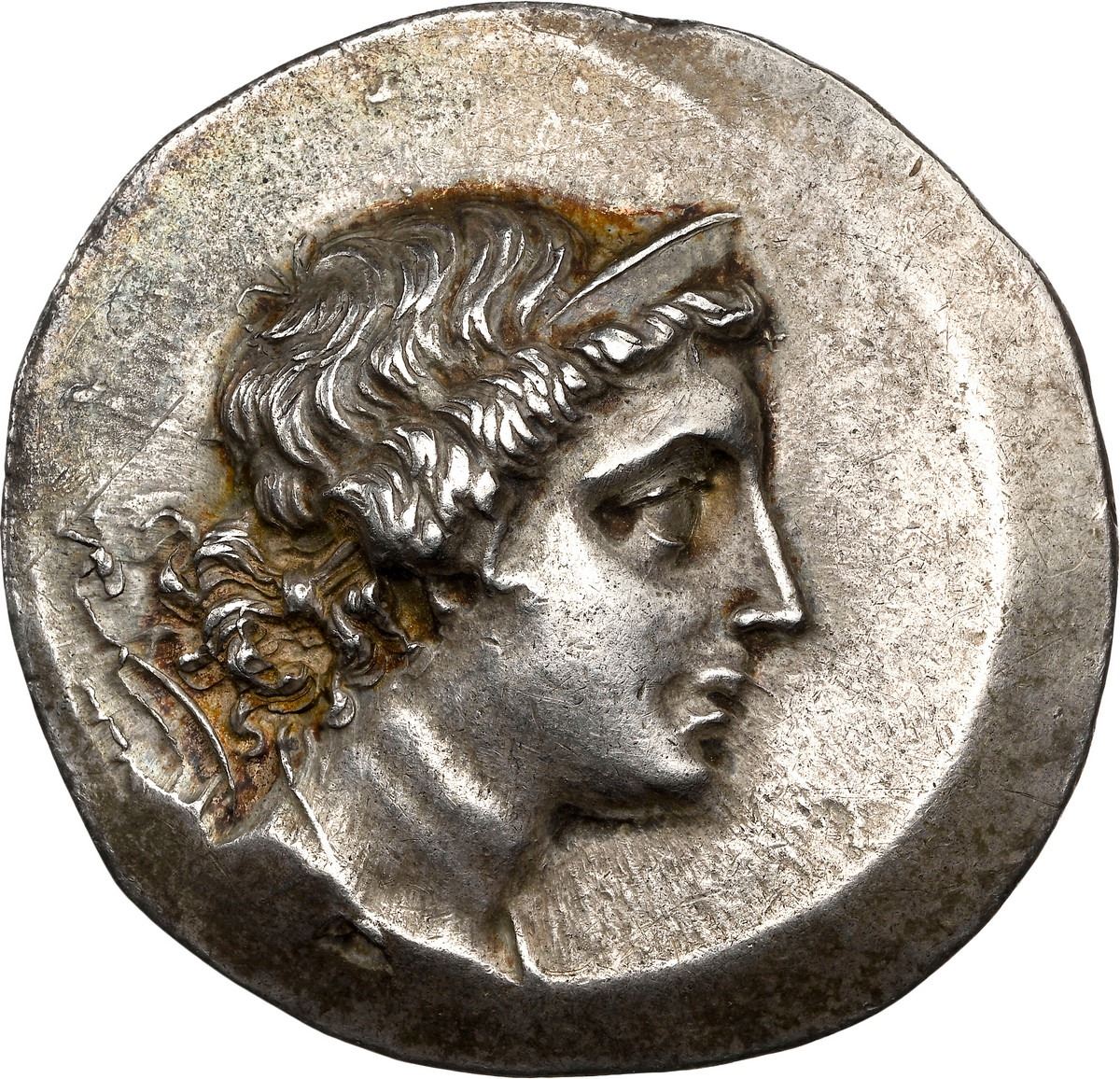 ANCIENT GREEK, Ionia, Magnesia ad Maeandrum, AR tetradrachm, Euphemos, son of Pausanias, "magistrate," ca. mid-2nd century BC, stephanophoric type, NGC AU, strike 5/5, 4/5. BMC 36; SNG Berry 1068. 16.84 grams. Diademed and draped bust of Artemis, right / Apollo, nude, standing left, leaning on tripod, ΕYΦΗΜOΣ ΠAYΣANIOY left; laurel branches in right hand; all within laurel wreath. Struck on a large flan, slightly off center, crisp details and medallic alignment, Artemis in high relief. Stephanophoric refers to the wreath border on the reverse and this style became popular around the eastern Aegean soon after Athens introduced the type as the now-named "New Style" tetradrachms. The engraved dies created a somewhat convex obverse and concave reverse and the coins became especially popular in the city-states of Aeolis-Myrina, Aeolis-Kyme, and Magnesia ad Maeandrum. NGC #2150779-018. Reportedly pedigreed to the Geoffrey & Bequet auction of December 2007, lot 45.