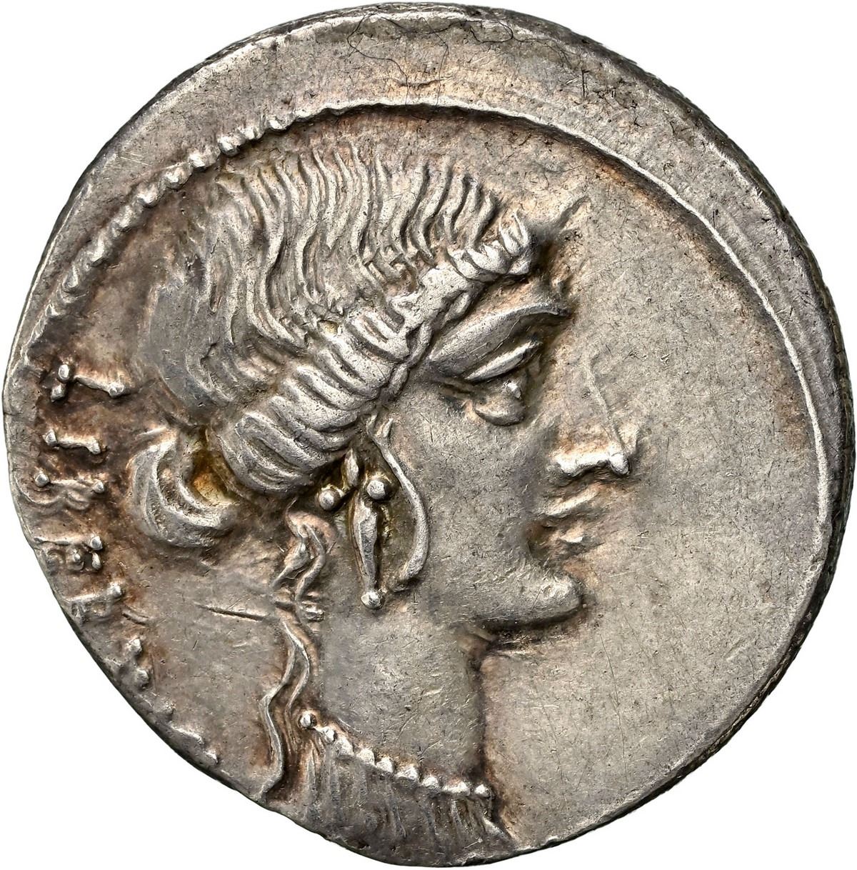 ANCIENT ROMAN, Roman Imperatorial, Rome mint, AR denarius, Q. Servilius Caepio (M. Junius) Brutus (died 42 BC) as moneyer, ca. 54 BC, NGC Ch XF, strike 4/5, surface 5/5. BMC 3861; Bab-31; Crawford 433/1; Sear 397; Sydenham 906. 3.96 grams. LIBERTAS, head of Liberty right / BRVTVS. L, Junius Brutus walking in procession left between two lictors, preceded by an accensus. Incipient iridescent toning, clear details on slightly off-center oversized flan. NGC #6710930-001. Pedigreed to the Münzen und Medaillen AG (Basel) Fixed Price List of August 1992, lot 45 (stated on label).