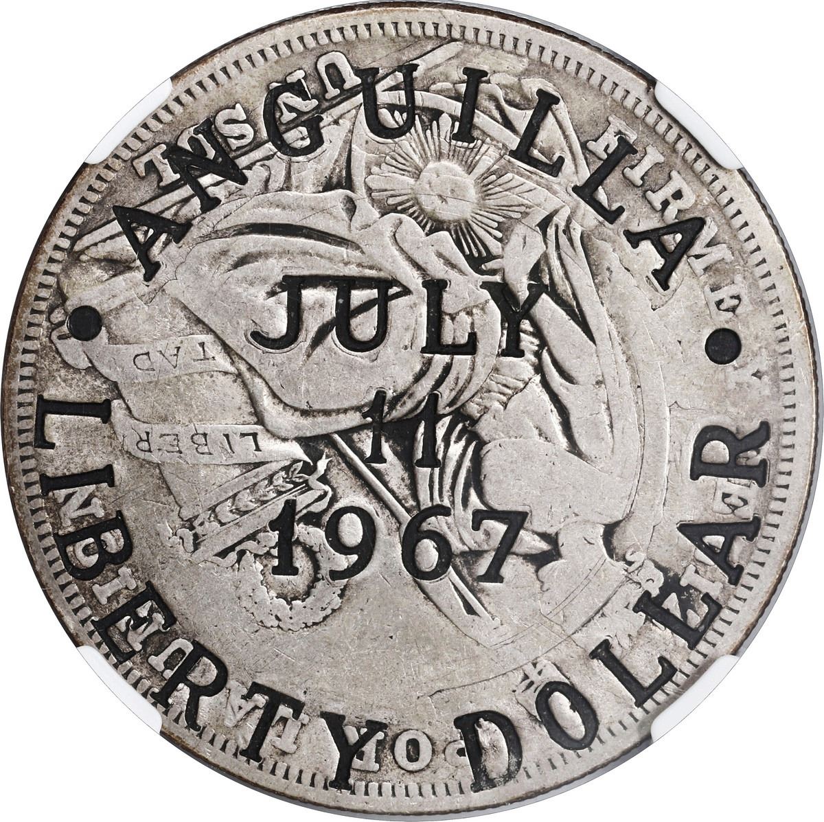 ANGUILLA,  Liberty  dollar, July 11 1967 countermark on a Lima, Peru, 1 sol, 1926, NGC VF 30, finest
