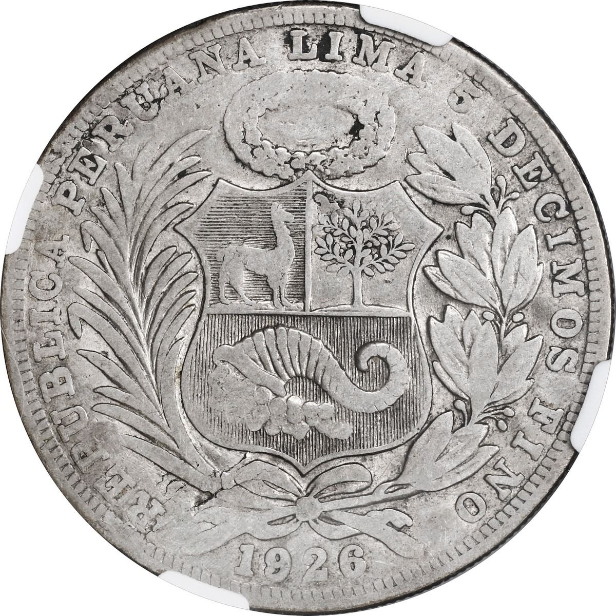 ANGUILLA, "Liberty" dollar, July 11 1967 countermark on a Lima, Peru, 1 sol, 1926, NGC VF 30, finest known in NGC census. KM-X3. Nice bold countermark with full darkened lettering as made, golden toned surfaces with some luster, the sole finest example of just three listed in the NGC census.