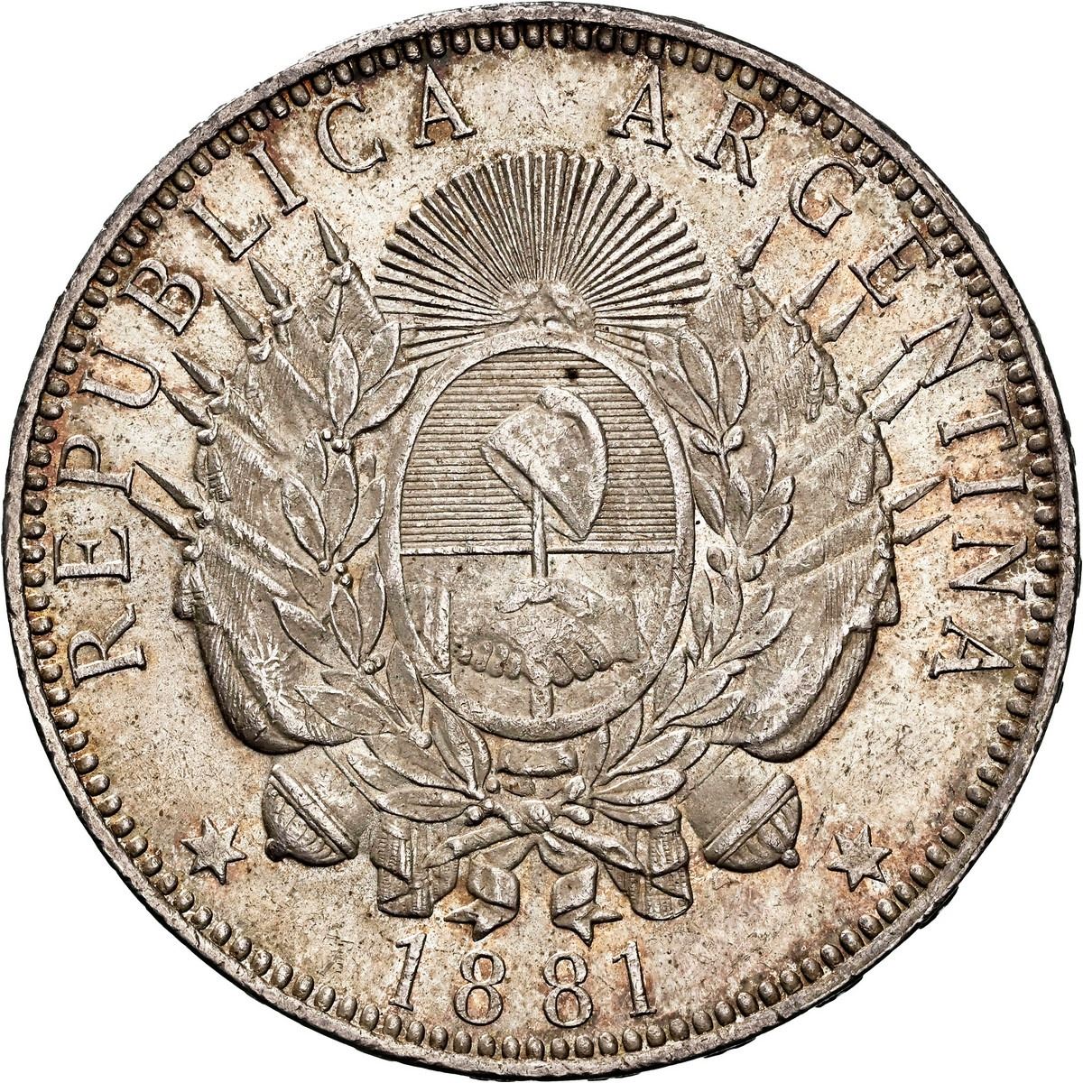 ARGENTINA, 1 peso (patacón), 1881, NGC MS 62, ex-Janson.