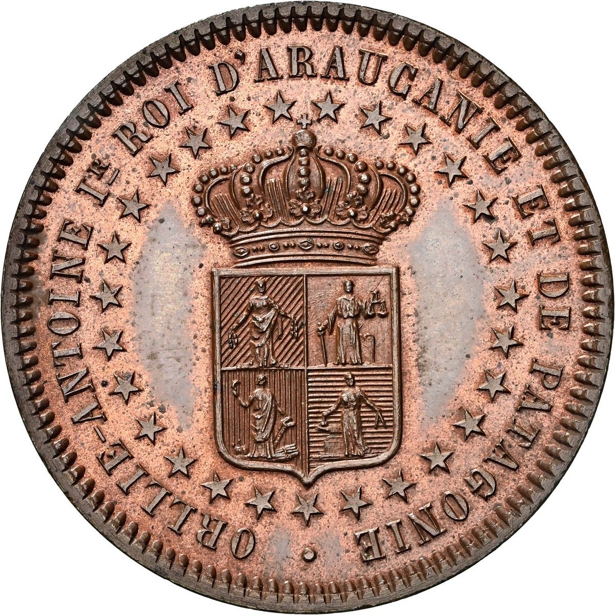 ARGENTINA - PATAGONIA and ARAUCANIA (New France), bronze proof essai 2 centavos, King Orélie-Antoine