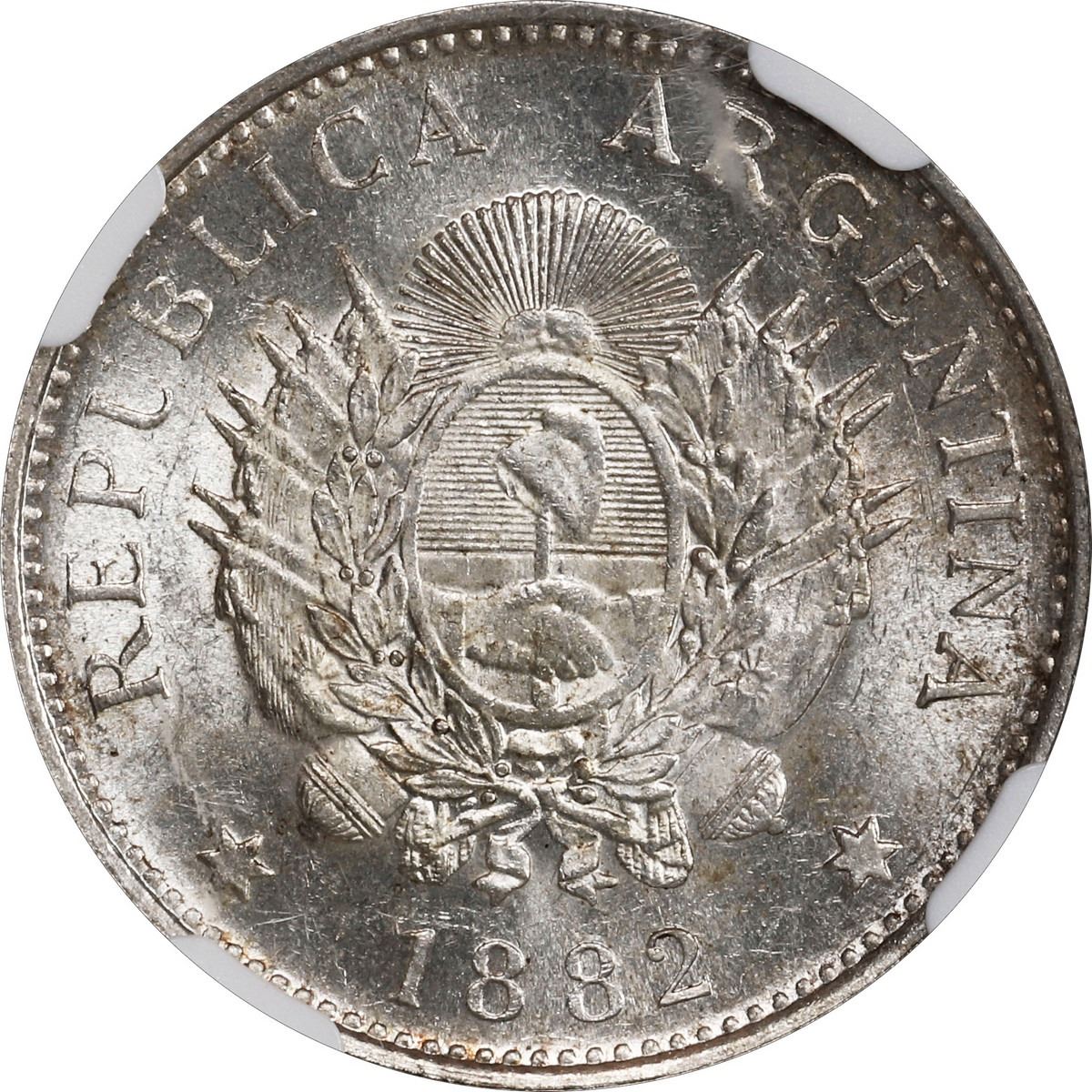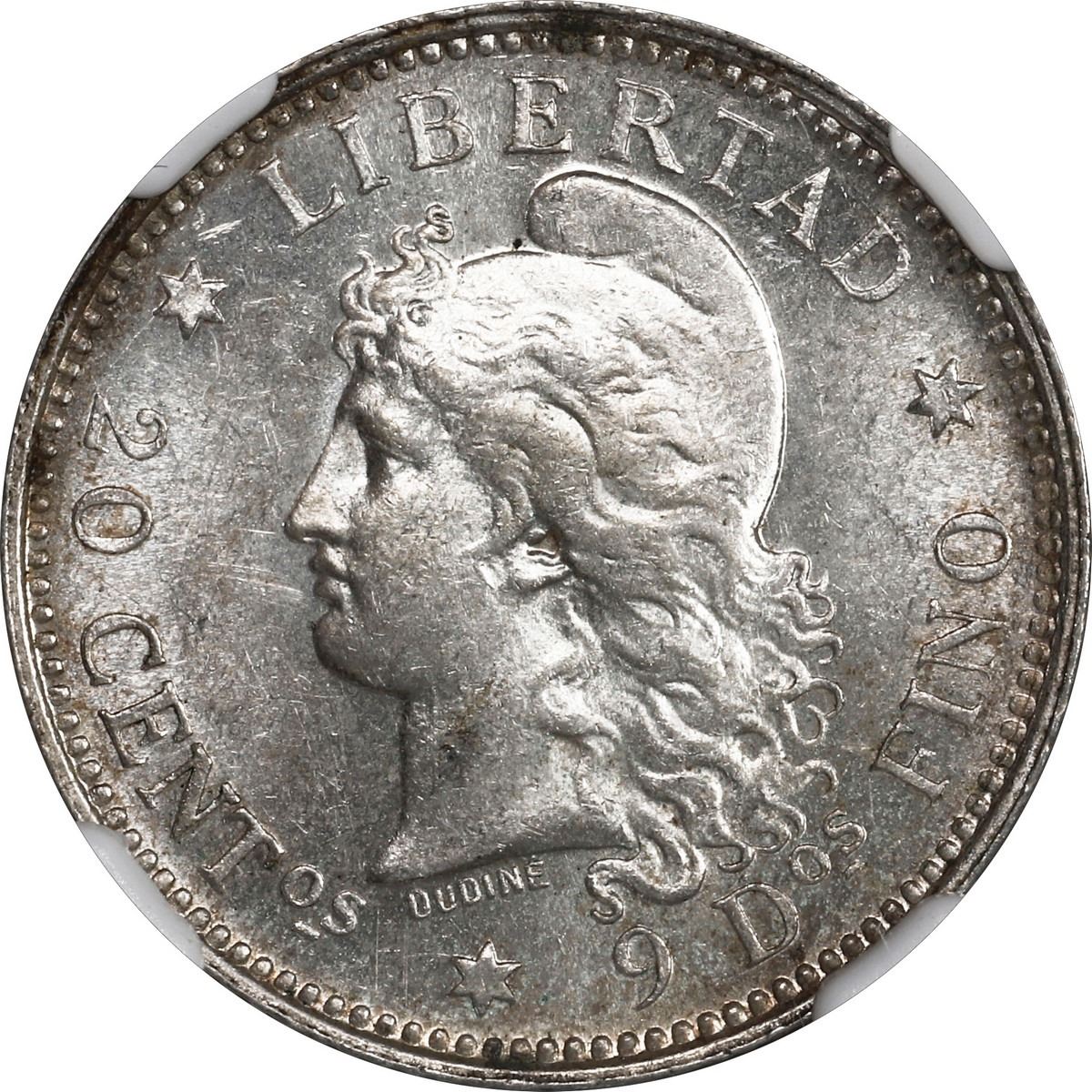 ARGENTINA, Republic, 20 centavos, 1882, NGC MS 63.
