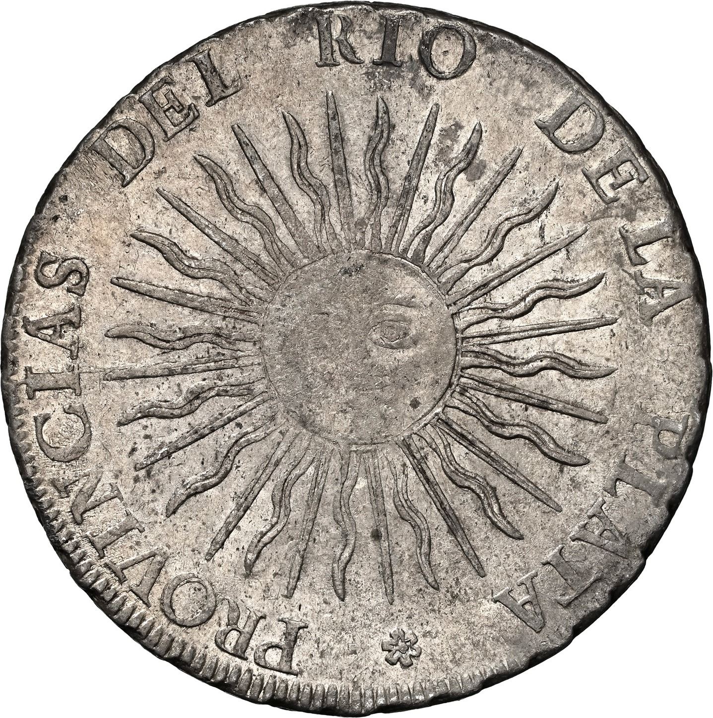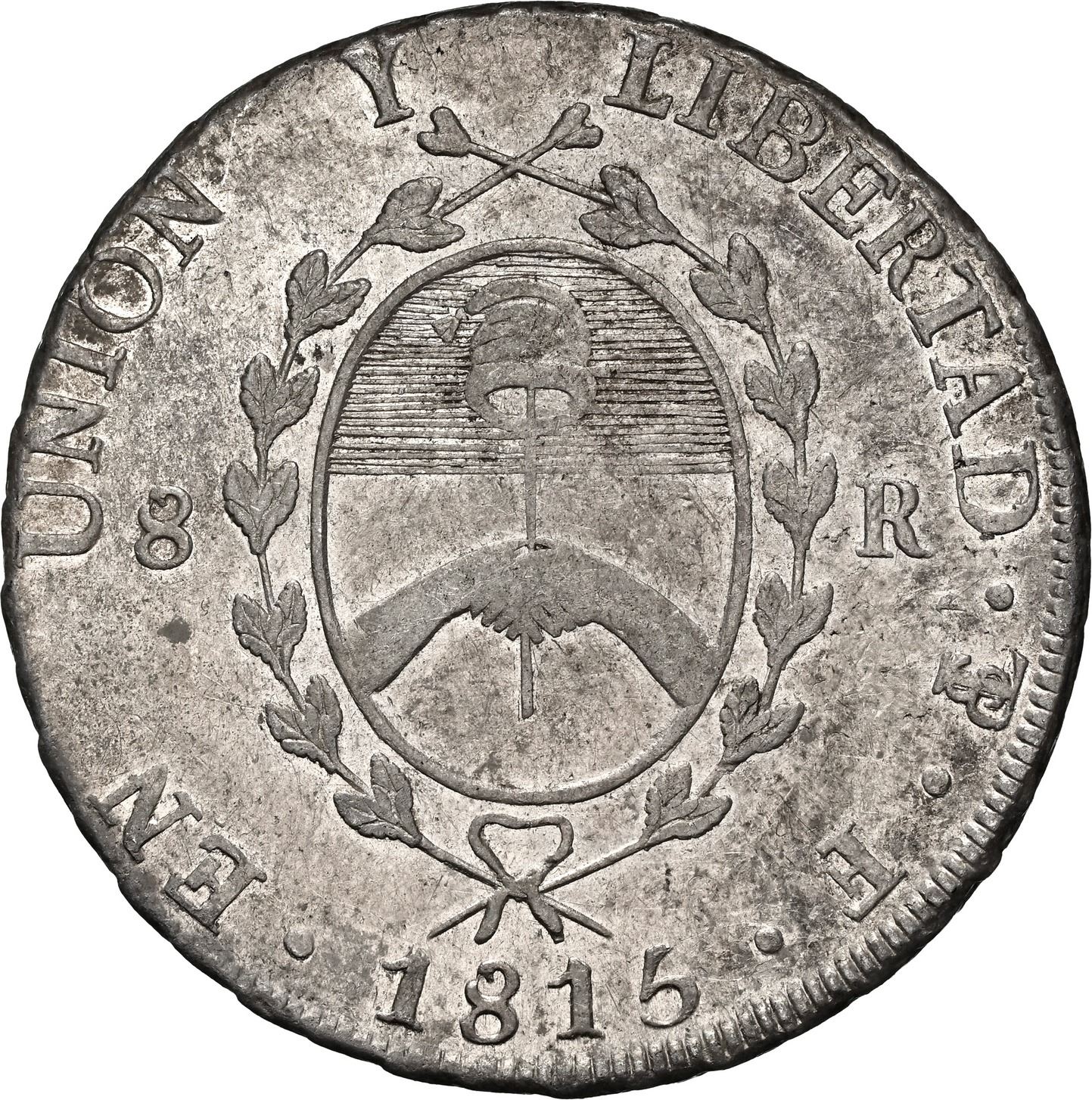 ARGENTINA (River Plate Provinces), Potosí mint, 8 reales, 1815 F, NGC AU 50. Janson-5.1; KM-14. Rather lustrous for the assigned grade, which appears to be based on surface hairlines and weakly struck centers (particularly the sunface), but overall it presents like a high-grade coin, struck slightly off-center.