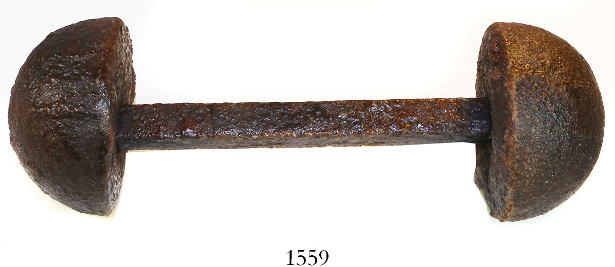American Revolutionary War-period iron barshot from Virginia, ca. 1780.