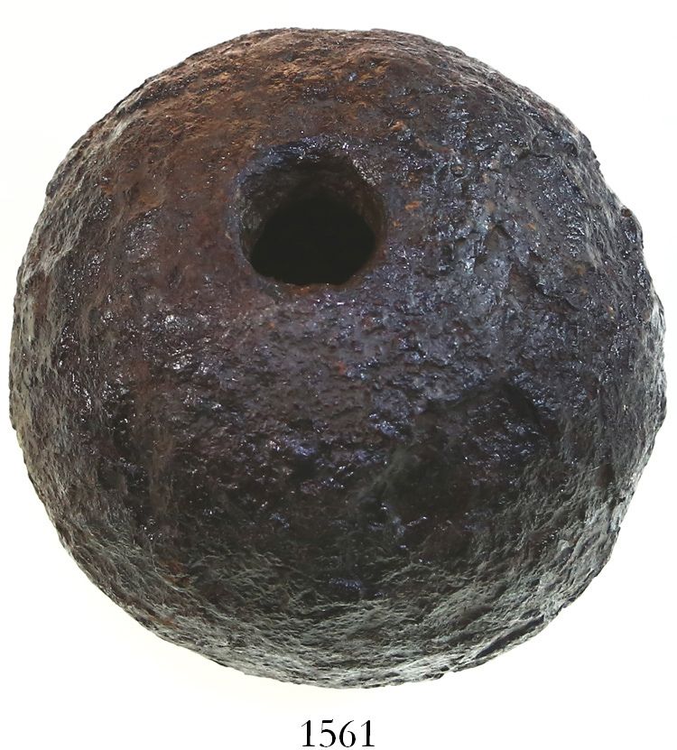 American Revolutionary War-period iron grenade from Virginia, ca. 1780, cleaned and conserved.