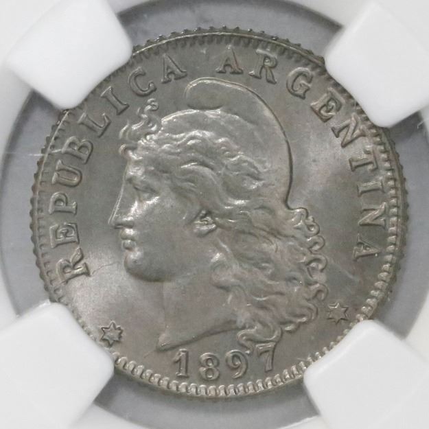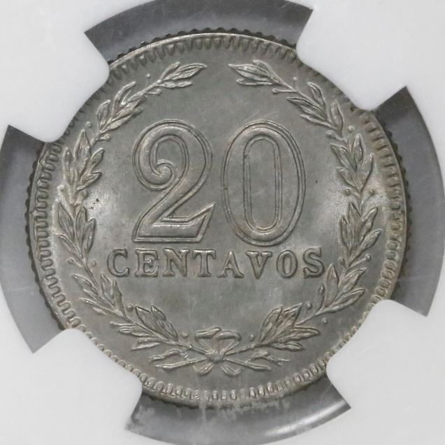 Argentina, 20 centavos, 1897, NGC MS 65.