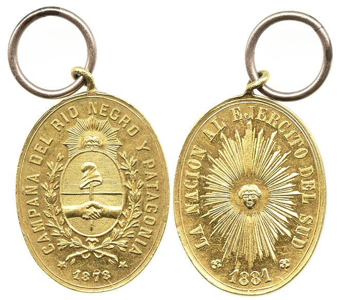 Argentina, oval gold medal, 1881, Campaign for Rio Negro, with ring at top, rare.