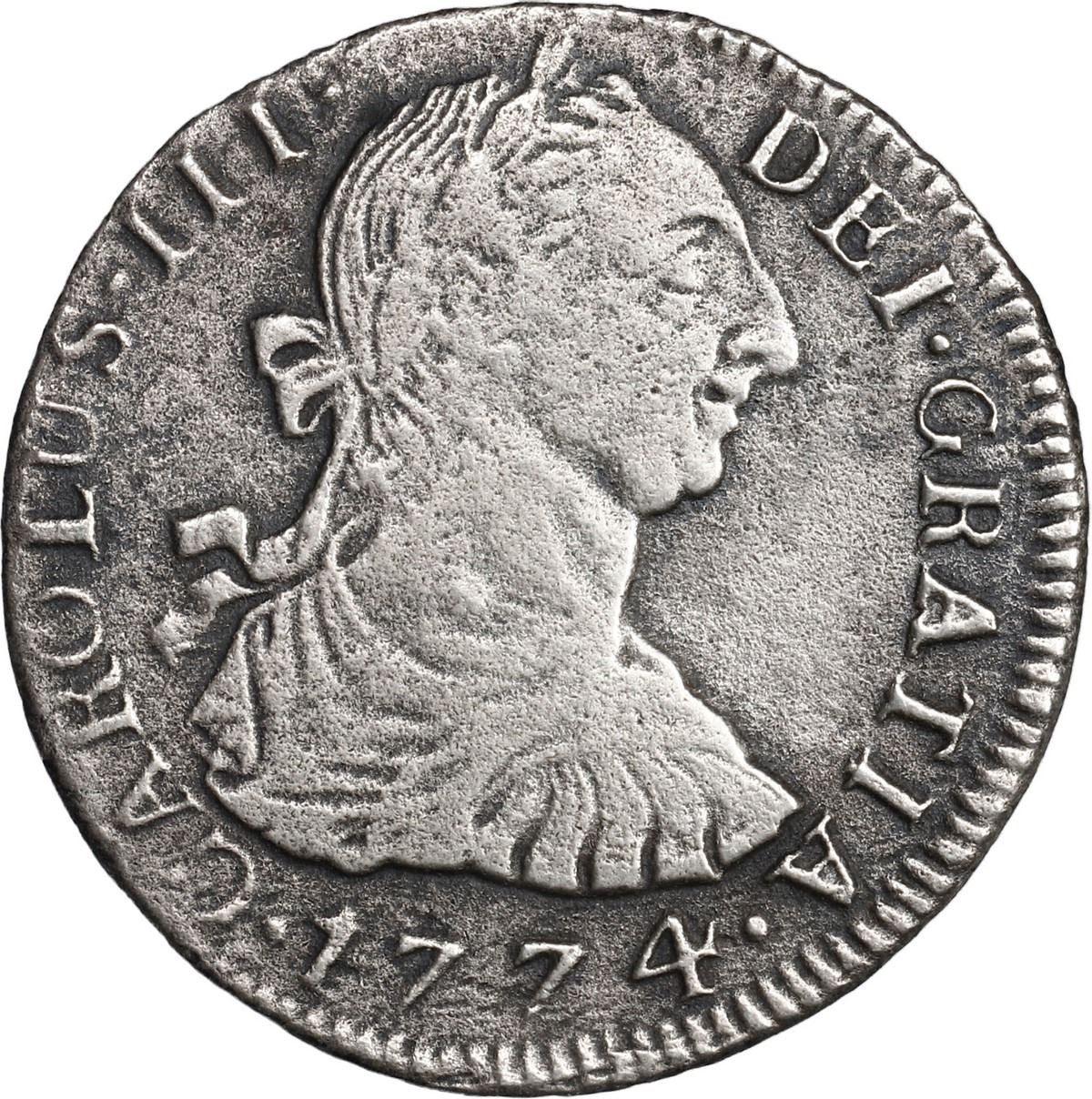 BOLIVIA, Potosí, bust 2 reales, Charles III, 1774 JR.