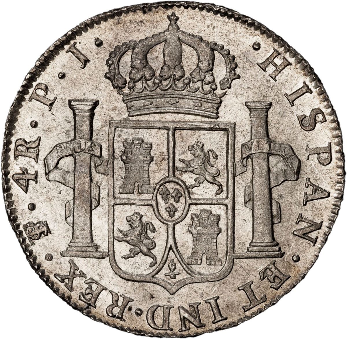 BOLIVIA, Potosí, bust 4 reales, Charles IV, 1808 PJ, • after CAROLVS, PCGS MS62+, finest known in PCGS census. Janson-77.20.1; Cal-845; KM-72. Choice full details and brilliant luster, nearly full rims, hard to imagine one nicer (but tied with one other at the same grade at NGC).