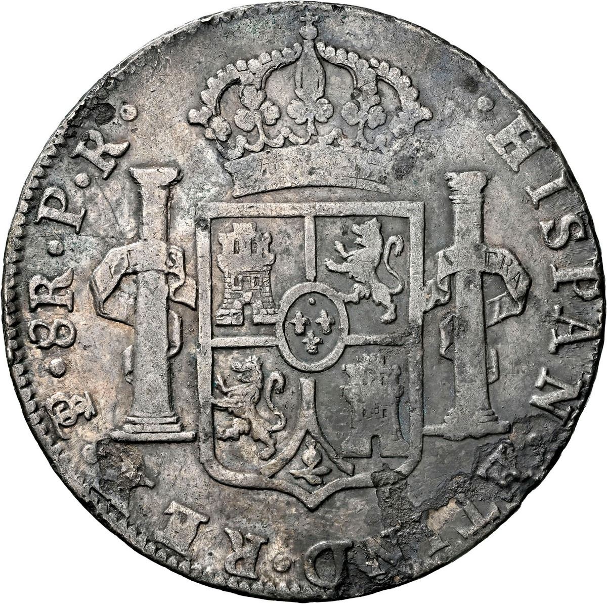 BOLIVIA, Potosí, bust 8 reales, Charles III, 1784 PR, NGC VF details / saltwater damage (Shipwreck Blue Label). Janson-63.13.4; Cal-1187; KM-55. VF details with patchy dark toning (low contrast), corrosion only as small pits here and there. With original certificate from the salvor. Recovered from: HMS Athenienne, sunk in 1806 off Sicily