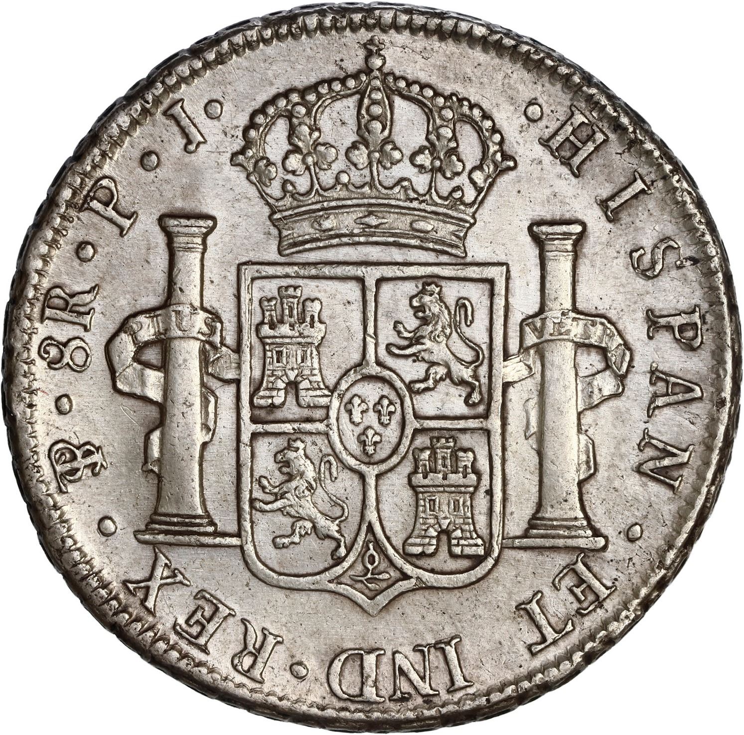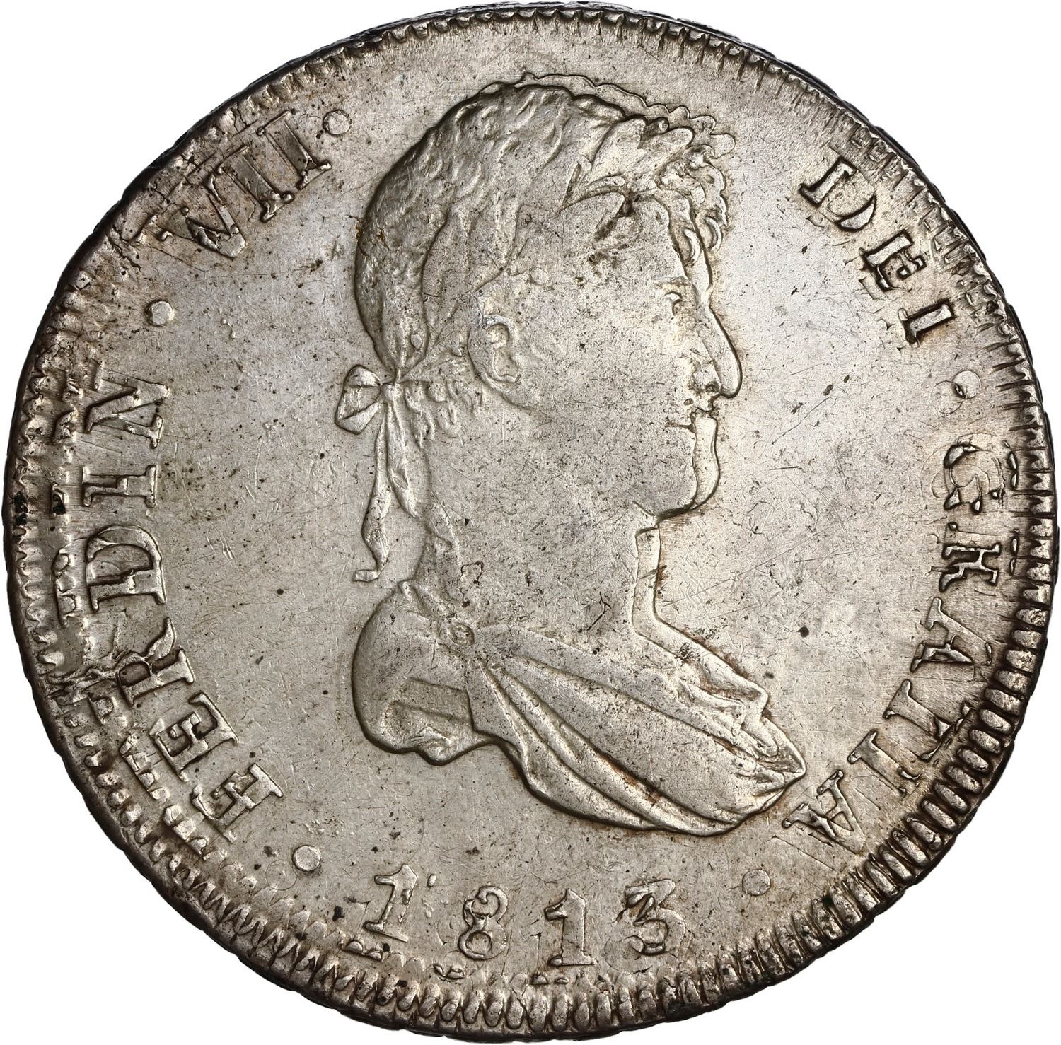BOLIVIA, Potosí, bust 8 reales, Ferdinand VII, 1813 PJ, double-struck obverse (rare error).
