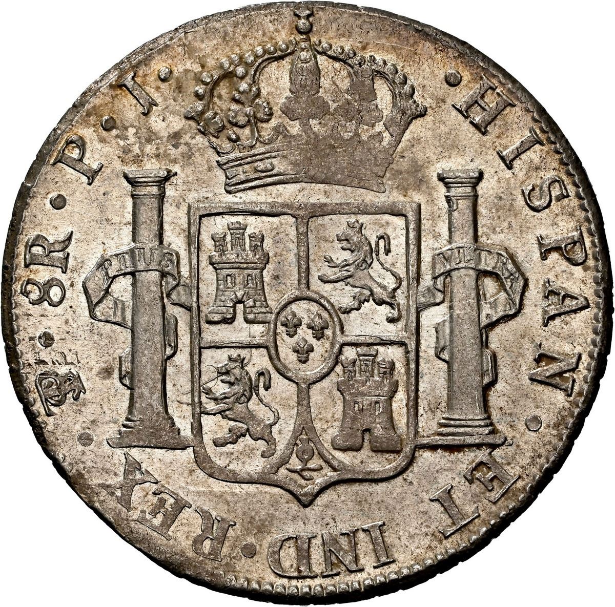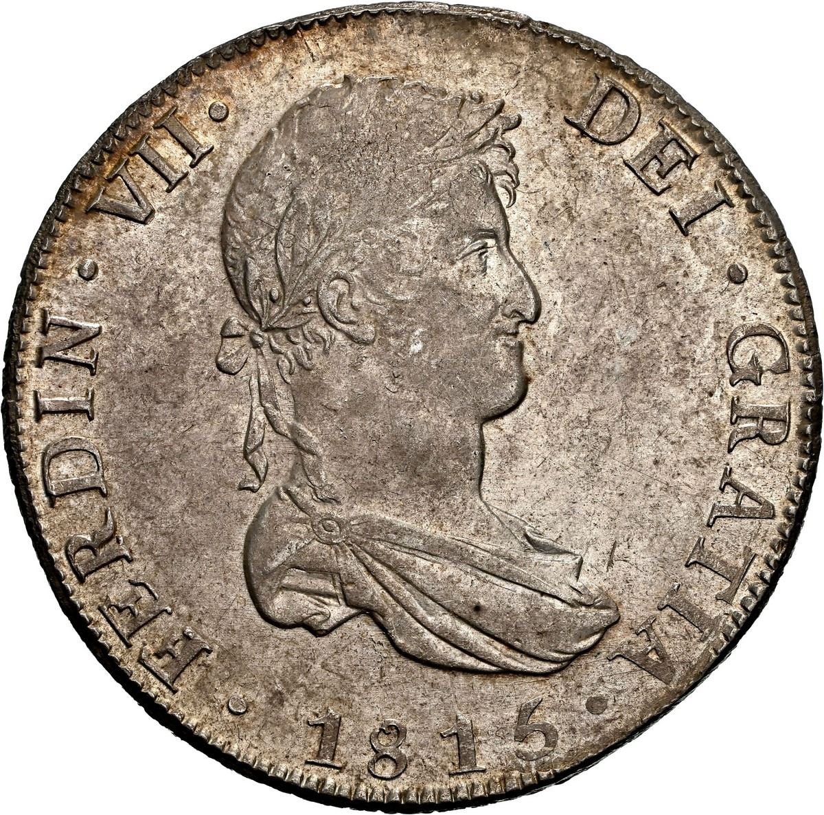 BOLIVIA, Potosí, bust 8 reales, Ferdinand VII, 1815 PJ, NGC MS 62, finest known in NGC census.