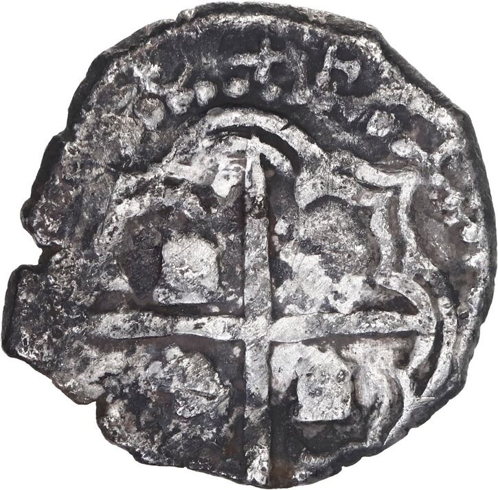 BOLIVIA, Potosí, cob 1 real, 1630 T, very rare. S-P26; KM-12a; Cal-718. 3.24 grams. VF with partial shield and just enough of the assayer showing, off-center yet nearly full cross with clear 0 of date visible above, rather crude striking on an irregular planchet.