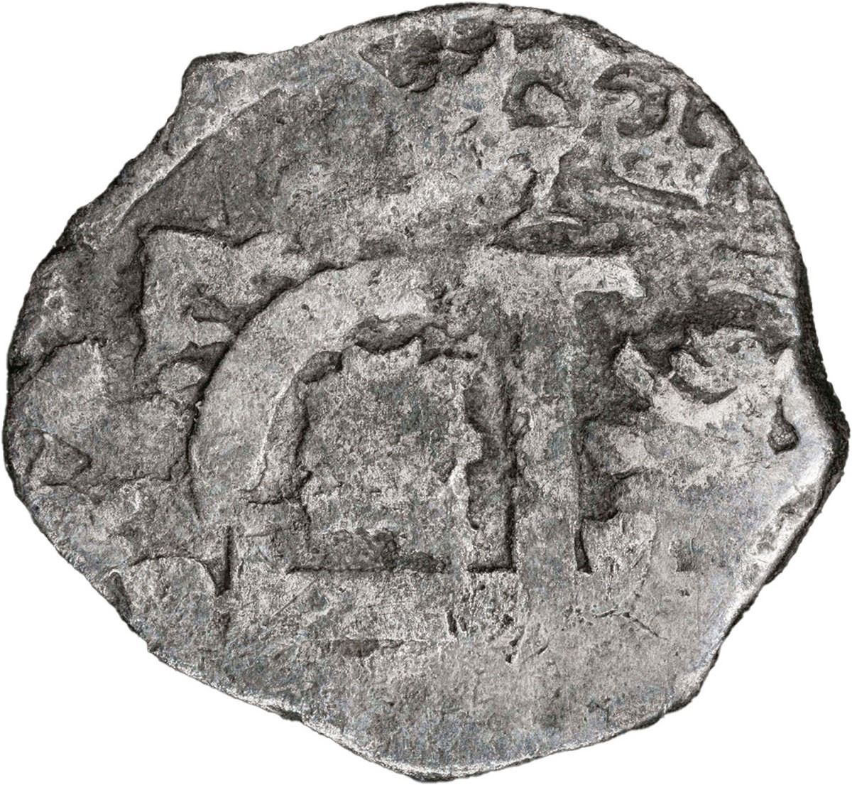 BOLIVIA, Potosí, cob 1 real, 1687 (VR), offset double-strike, PCGS F details / saltwater damage, ex-Christie's. S-P40; KM-23; Cal-280. 2.14 grams. Most of pillars with 8mm-shifted double-strike, the cross also off-center, darkly toned but not overly corroded, likely shaved in its time, nice original pedigree with rare catalog. (Note: shipwreck and coin date not mentioned on label.). Pedigreed to the Christie's (New York) Feversham auction of February 1989, with original lot-tag 950 (group lot) and original catalog. Recovered from: Feversham, sunk in 1711 off Nova Scotia, Canada