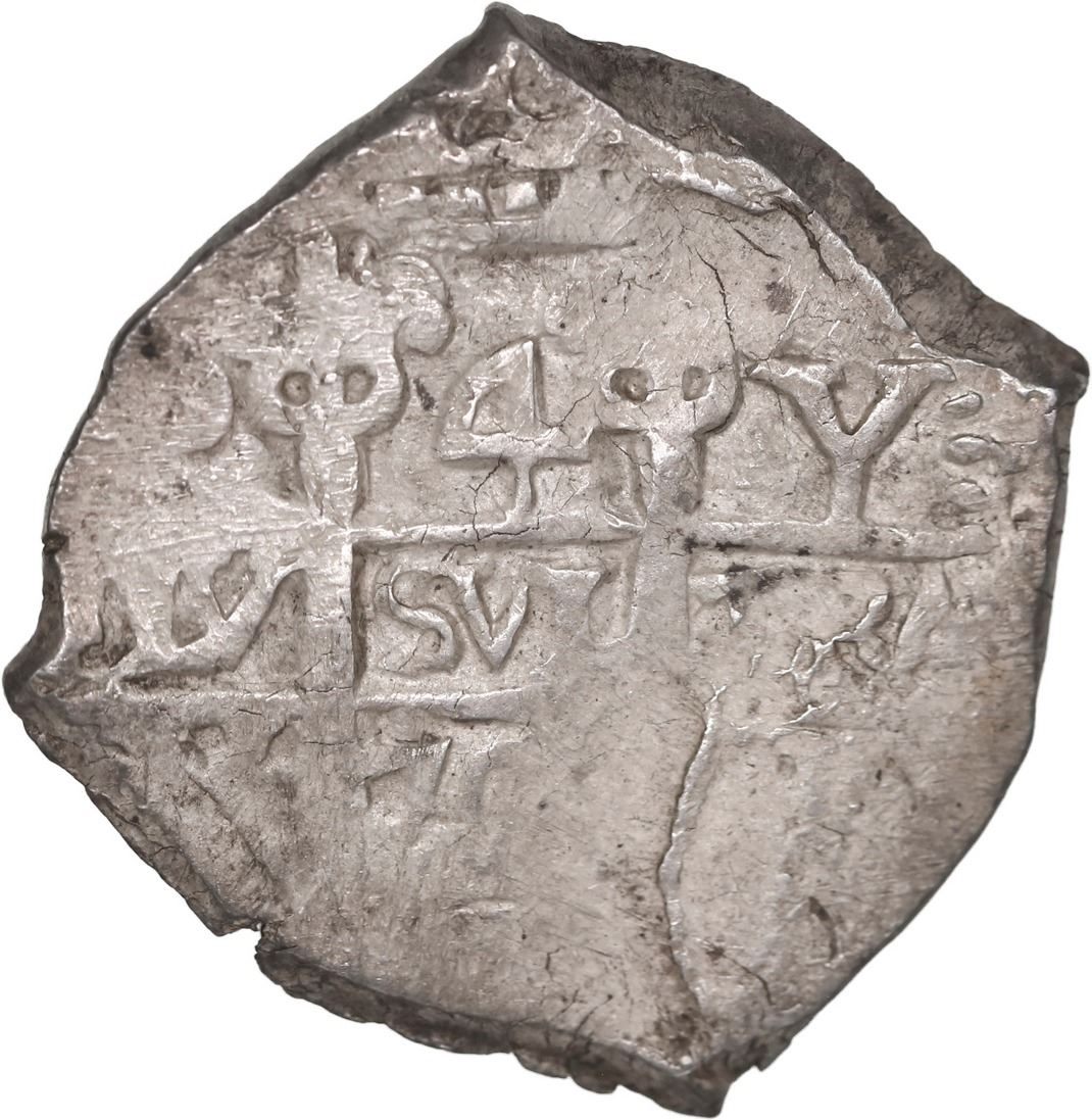 BOLIVIA, Potosí, cob 4 reales, 1701 Y, posthumous Charles II, ex-Ponte. S-P43; KM-25; Cal-unl (Type 94). 13.81 grams. Chunky flan with one bold assayer and parts of two dates, nice tops of pillars, much flatness and odd small pits on reverse but technically AU or so for actual wear, posthumous king assumed (not visible, scarce in any case). Pedigreed to the Luis R. Ponte Collection.