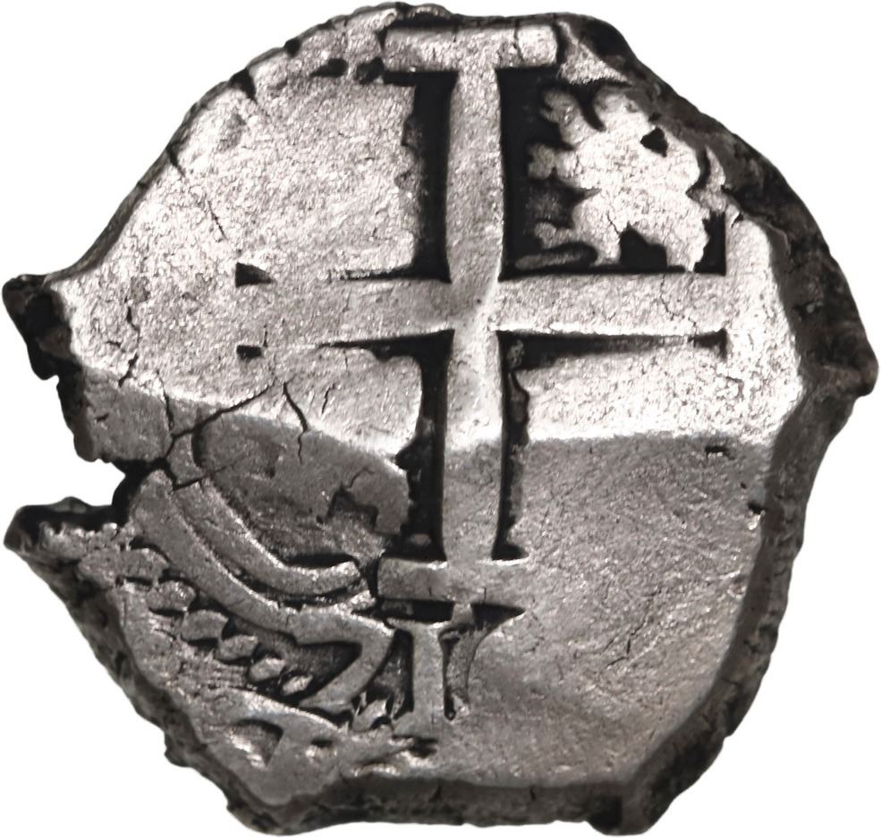 BOLIVIA, Potosí, cob 4 reales, 1716 Y, ex-Ponte. S-P43a; KM-30; Cal-1168. 11.78 grams. Full cross, off-center pillars, two clear dates, crude strike with much flatness and edge-crack, VG with black toning in crevices and slight surface porosity (possibly from the Princess Louisa of 1743). Pedigreed to the Luis R. Ponte Collection.