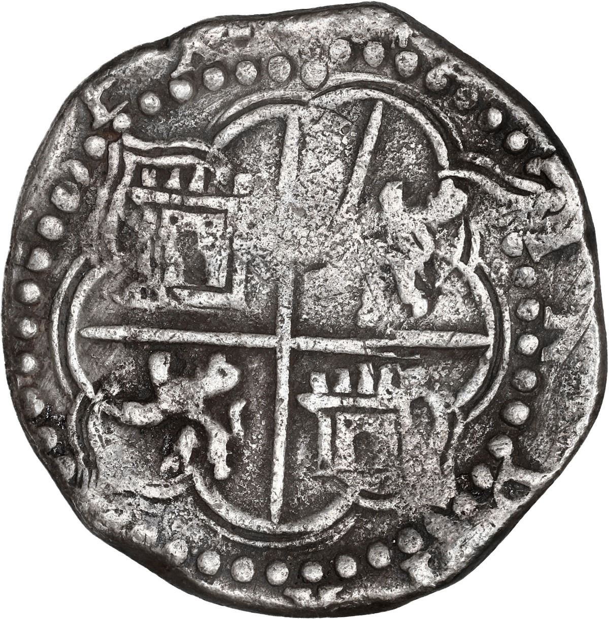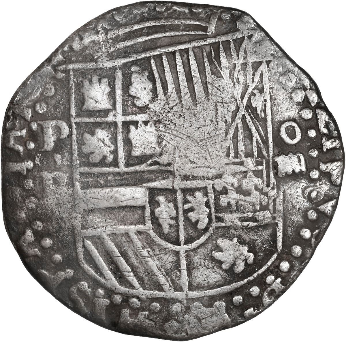BOLIVIA, Potosí, cob 4 reales, Philip II, assayer B (3rd period). S-P10; KM-4.2; Cal-525. 13.14 grams. Richly toned AVF with full but slightly doubled shield and cross exhibiting distinctive large-doorway castles (per Sellschopp 184).