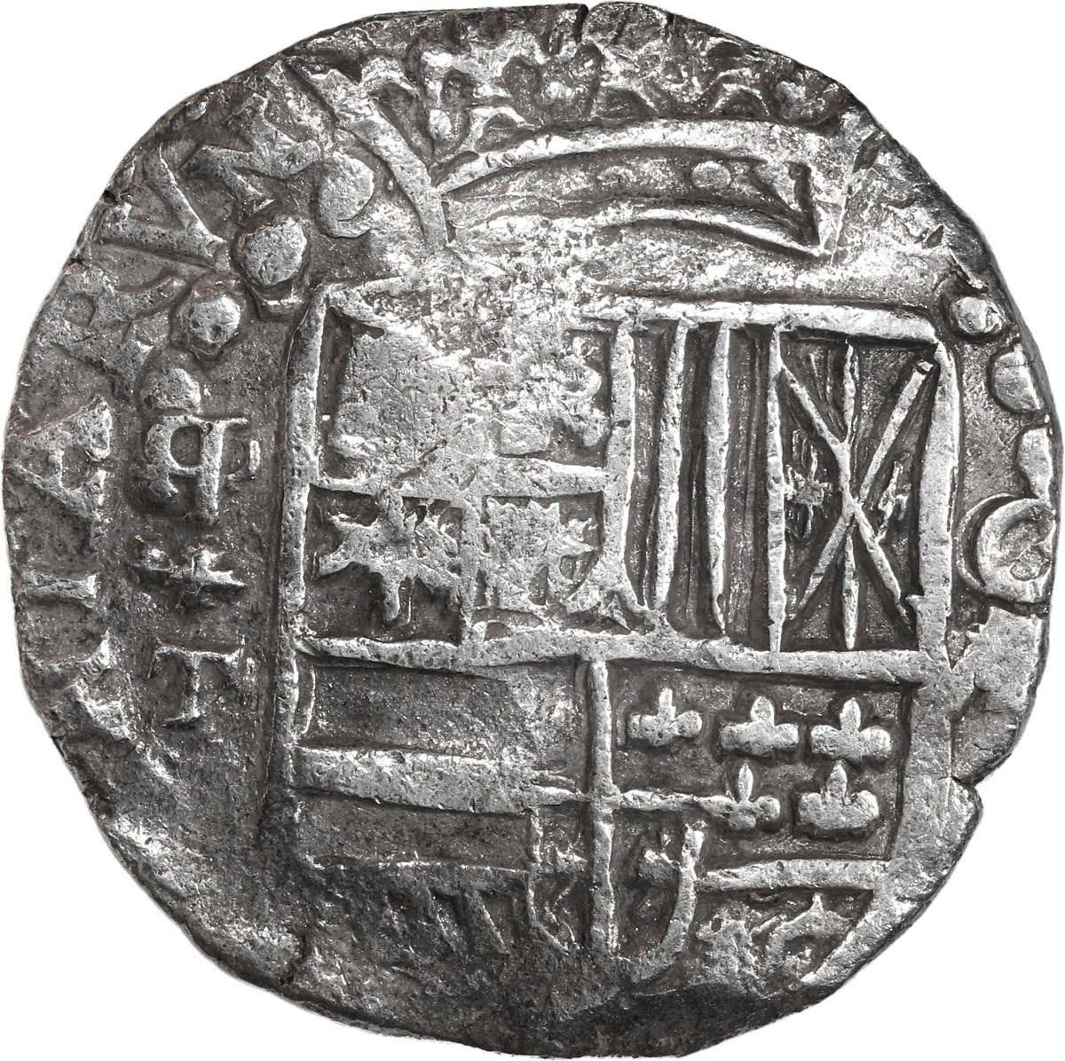 BOLIVIA, Potosí, cob 8 reales, 1620 T, quadrants of cross transposed, mintmark retrograde P over normal P. S-P21; KM-10; Cal-930. 26.72 grams. Perfectly round flan with very bold mintmark-assayer q/P+T to left of off-center full shield, full cross-and-tressure with just the bottom of the 0 of the date visible, lightly toned and corrosion-free XF. From the Atocha (1622), with original Fisher tag 85A-106874 (certificate missing).