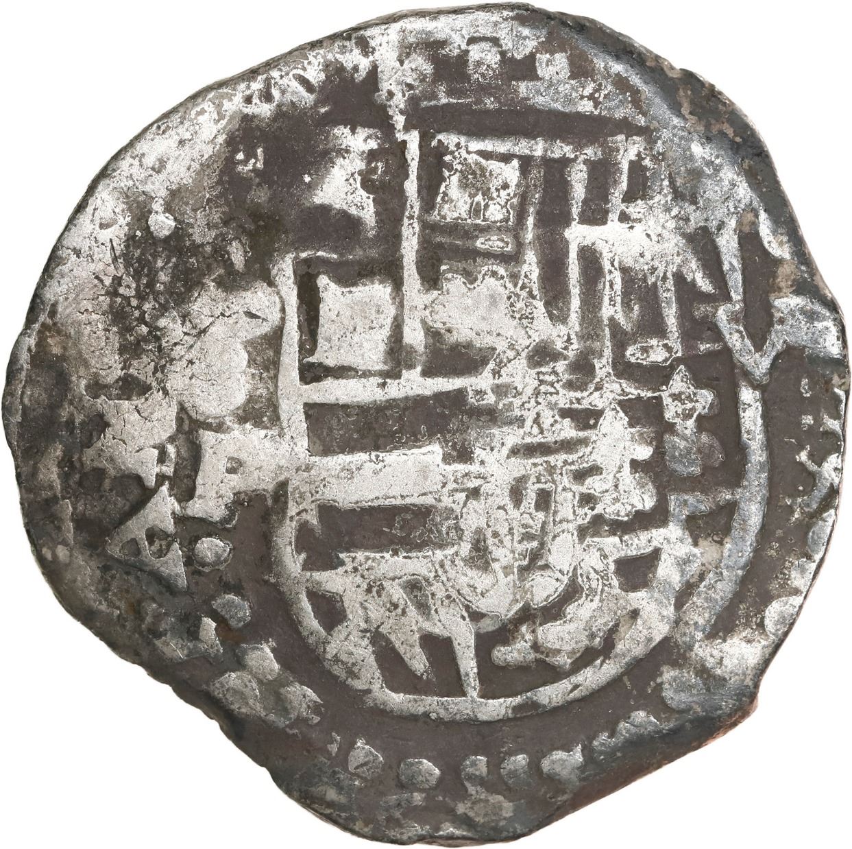 BOLIVIA, Potosí, cob 8 reales, (1629) T, denomination 8, heavy-dot borders. S-P26; KM-19a; Cal-1454. 27.18 grams. Nice bold shield and cross (a little doubled but both full), mintmark and assayer a bit off the flan but certain, a few verdigris spots, VF overall.