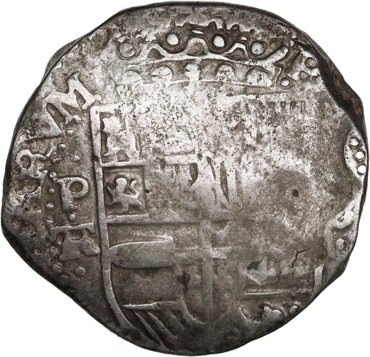 BOLIVIA, Potosí, cob 8 reales, 1636 TR, ex-Ponte. S-P27; KM-19a; Cal-unl (Type 327). 27.38 grams. Unevenly thick flan with most of shield and cross flat but with full and bold •P•TR• and crown, doubled but nearly full date, minimally toned Fine, scarce. Pedigreed to the Luis R. Ponte Collection.