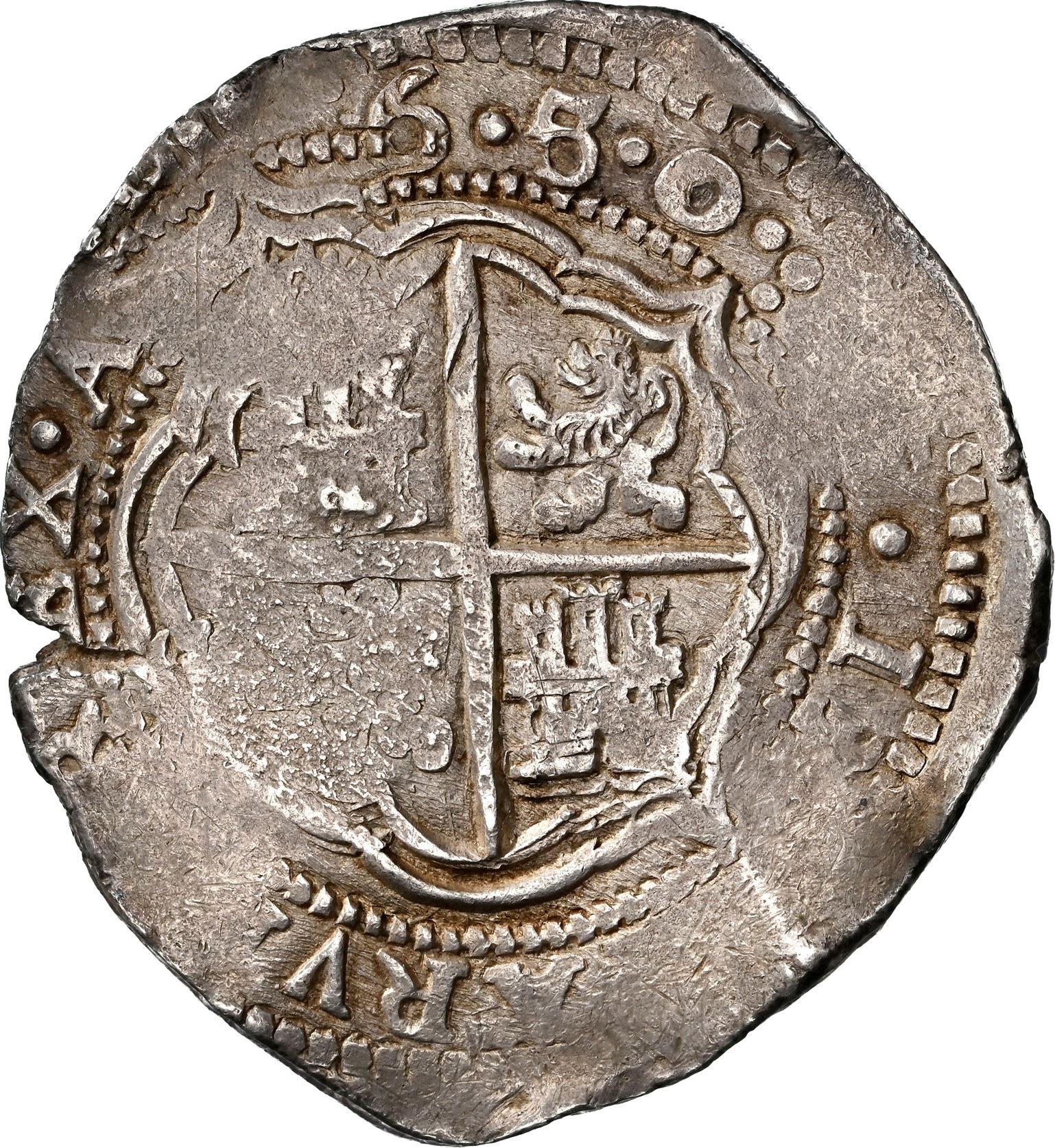 BOLIVIA, Potosí, cob 8 reales, 1650 (modern 5, with dots, date at 11 to 1 o'clock) O, with crowned-[