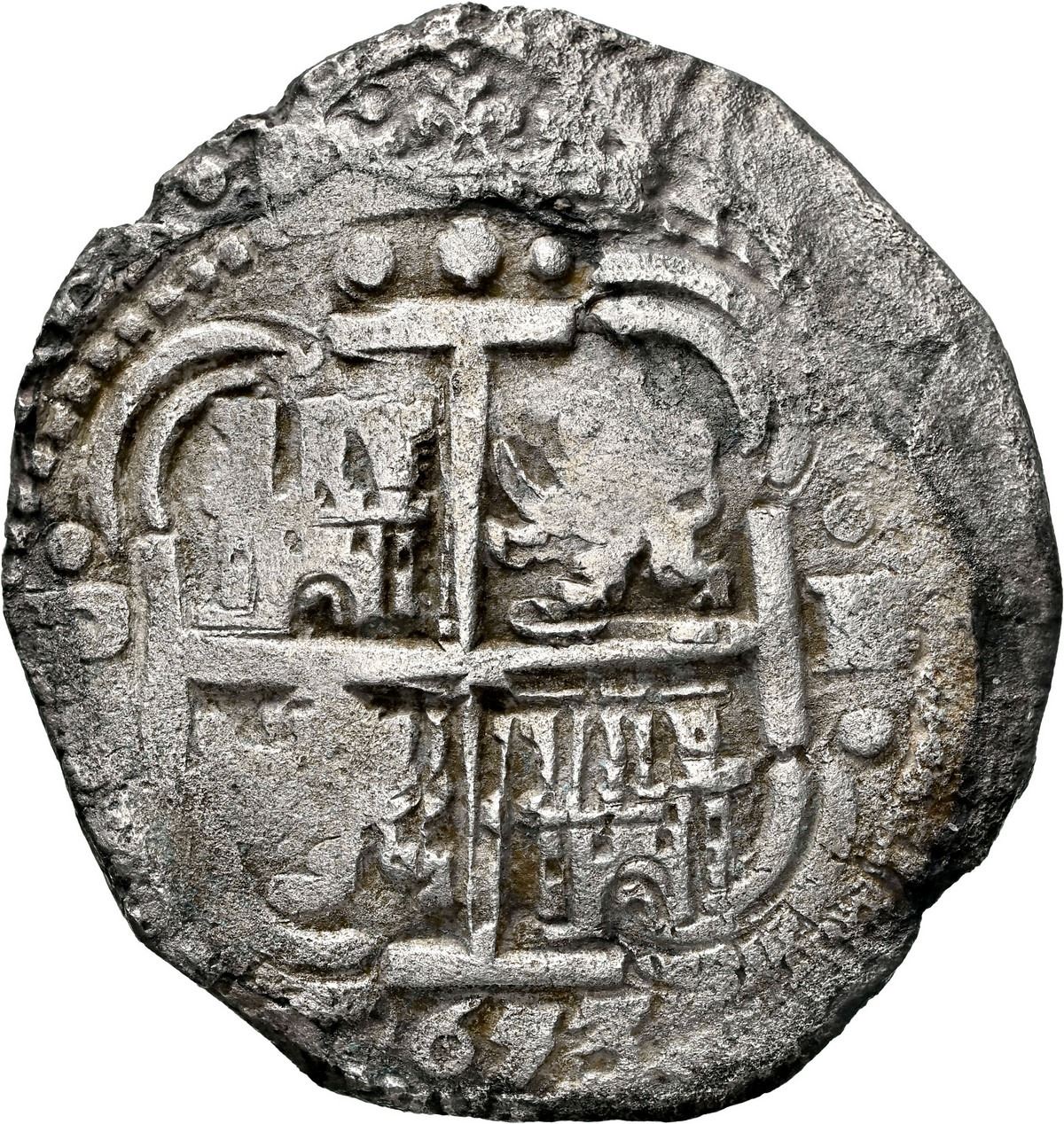 BOLIVIA, Potosí, cob 8 reales, 1653 E, PH at top, •pomegranate• above cross, NGC X