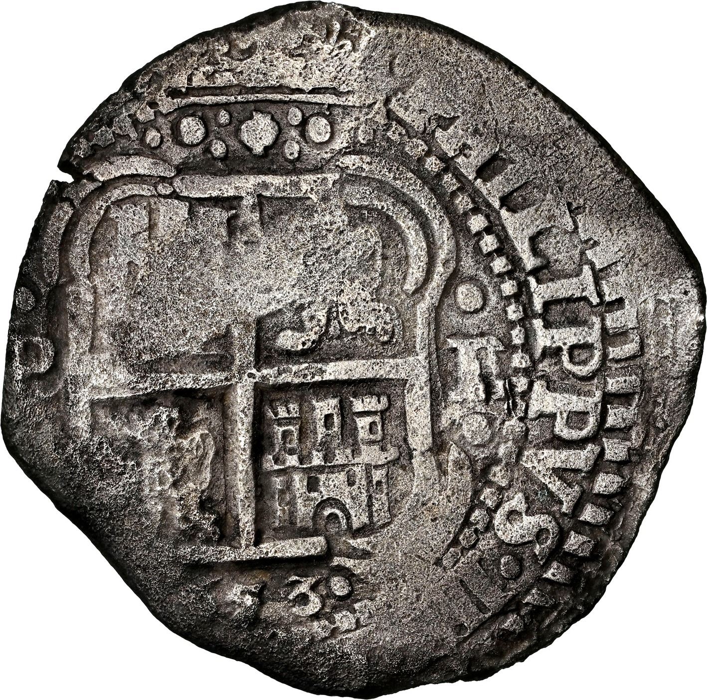 BOLIVIA, Potosí, cob 8 reales, 1653 E, •PH• at top, •:pomegranate:[x=#822