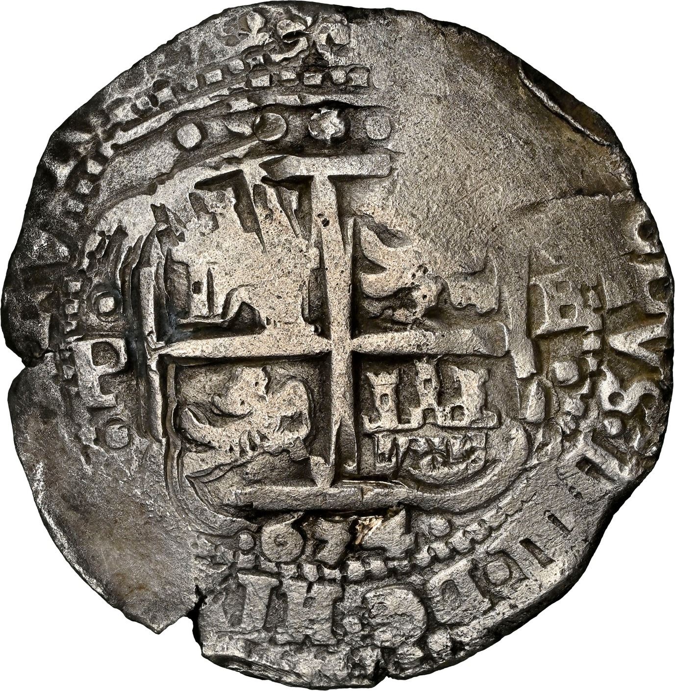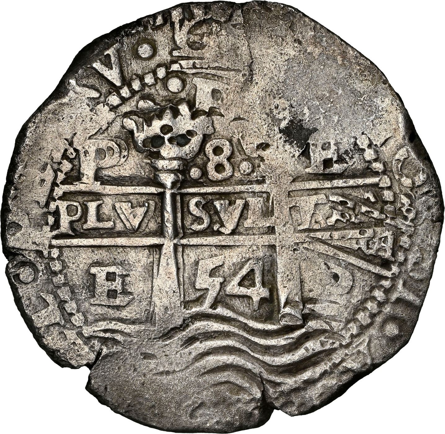 BOLIVIA, Potosí, cob 8 reales, 1654 E, •PH• at top, •pomegranate[x=#8226/