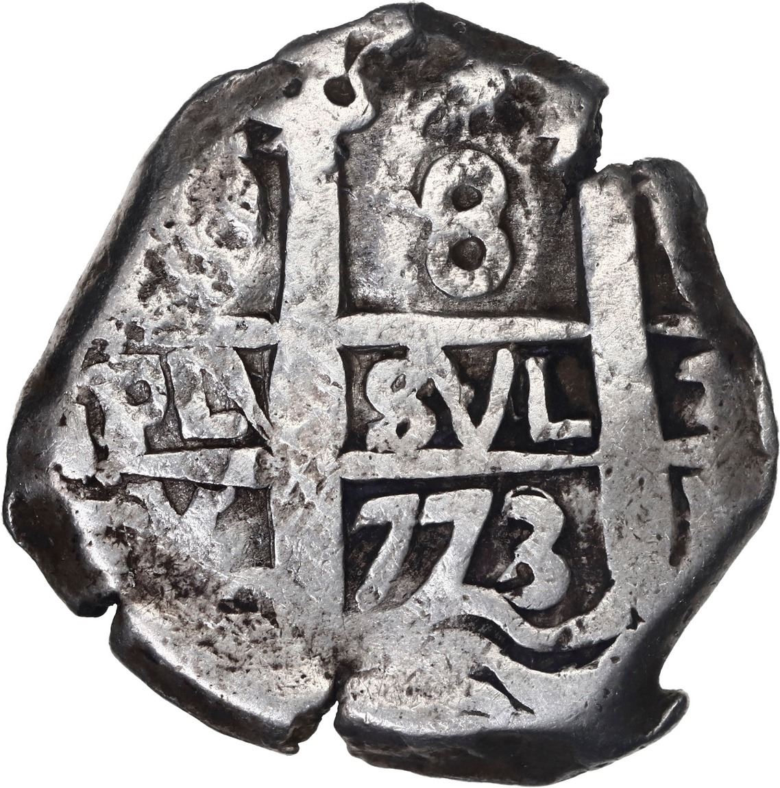 BOLIVIA, Potosí, cob 8 reales, 1773/2 V-Y, with double Guatemala sun-over-mountains countermark (Typ