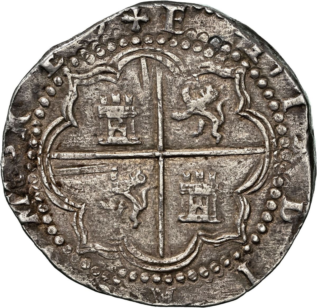BOLIVIA, Potosí, cob 8 reales, Philip II, assayer B (3rd period), transitional (comma-like) dots in