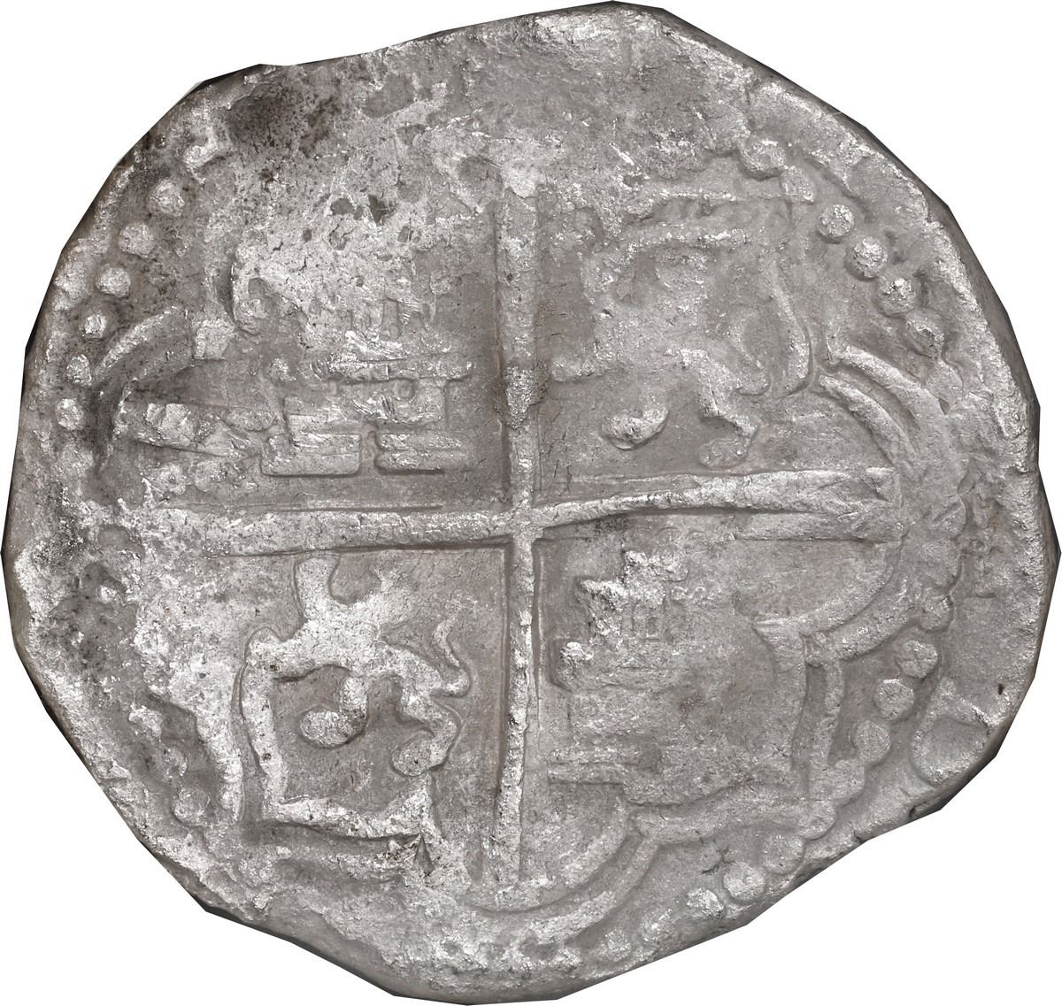 BOLIVIA, Potosí, cob 8 reales, Philip III, assayer Q, NGC Shipwreck Effect / Grade 2 (São José Shipwreck Label). S-P17; KM-10; Cal-916. Corroded shield side but with clear assayer, very nice full cross with just a little doubling. Recovered from: São José, sunk in 1622 off Mozambique, east of Africa