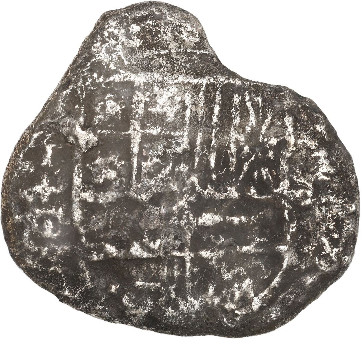 BOLIVIA, Potosí, cob 8 reales, Philip III, assayer T. S-P21; KM-10; Cal-Type 165. 17.60 grams. Dark and corroded with some shield and cross detail, assayer just barely visible. From the Atocha or Santa Margarita (1622), with original cardboard holder hand-marked 1346 (certificate missing).