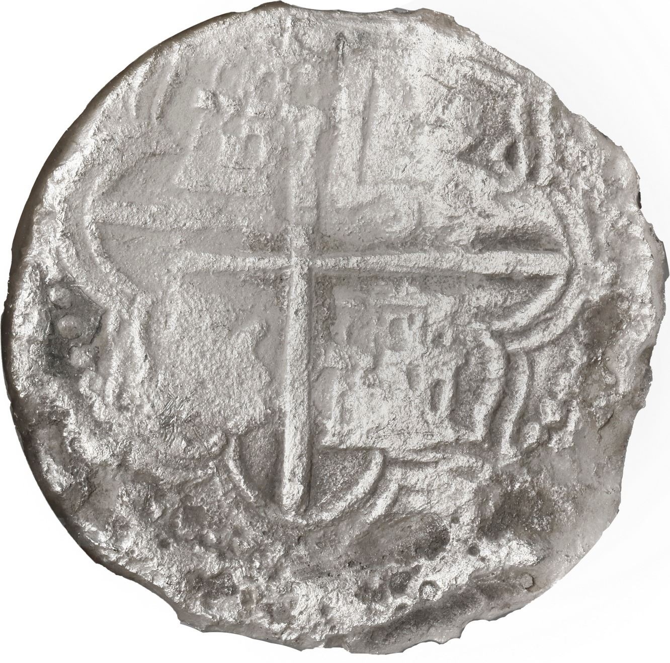 BOLIVIA, Potosí, cob 8 reales, Philip III, assayer not visible, Grade 2, NGC Shipwreck Effect (São José Shipwreck Label). KM-10; Cal-Type 164. Somewhat corroded but with full shield and nice cross (both a bit doubled). Recovered from: São José, sunk in 1622 off Mozambique, east of Africa