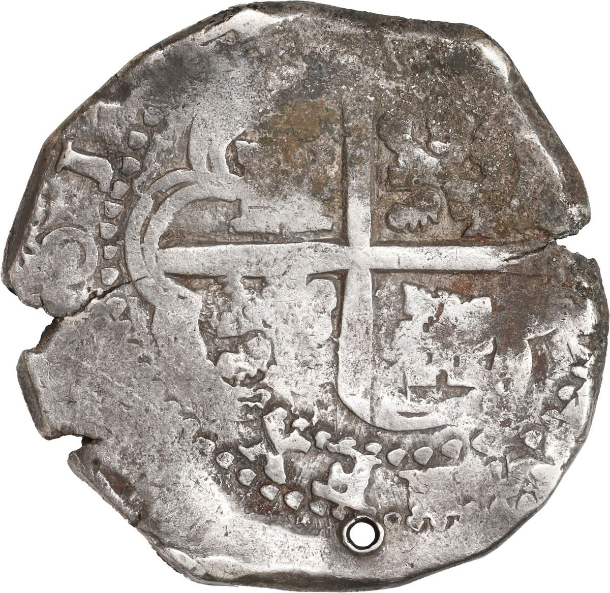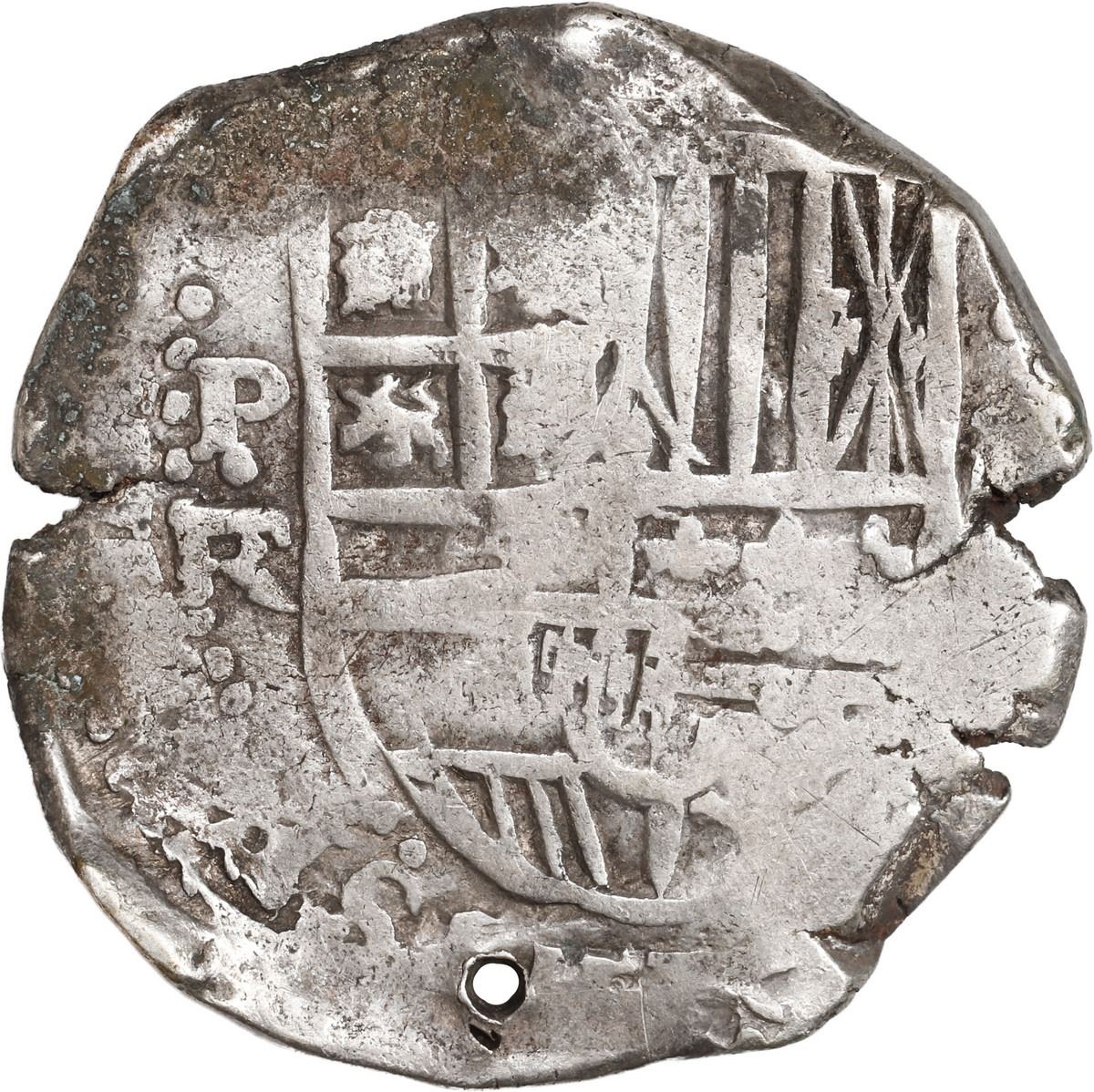 BOLIVIA, Potosí, cob 8 reales, Philip IV, assayer FR (early 1640s), ex-Karon. S-P28; KM-19a; Cal-Type 327. 27.73 grams. Slightly off-center strike with bold full P•FR, 164 of date, doubled cross, About Fine with dark orange encrustation, small edge-crack and tiny hole near bottom, desirable pedigree. Pedigreed to the Paul Karon Collection (Ponterio auction of March 1990, with original lot-tag 82).