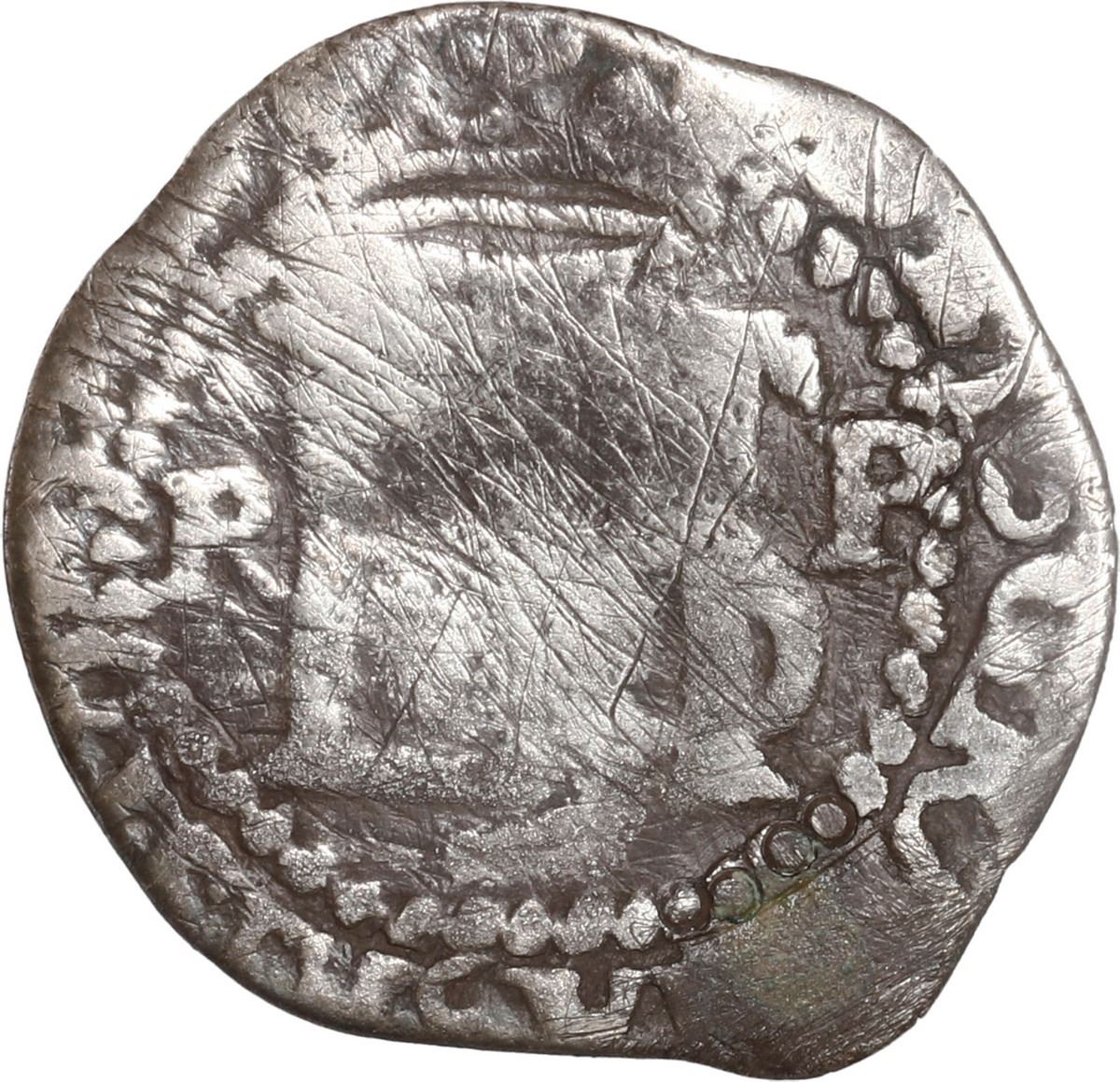 BOLIVIA, Potosí, cob ½ real, Philip II, assayer R (Rincón) to left, mintmark P to right. S-P1; KM-1.1; Cal-136. 1.41 grams. Scarce and popular as one of the first coins of this mint. VG/F with clear assayer, plugged hole on edge, some scuffs.