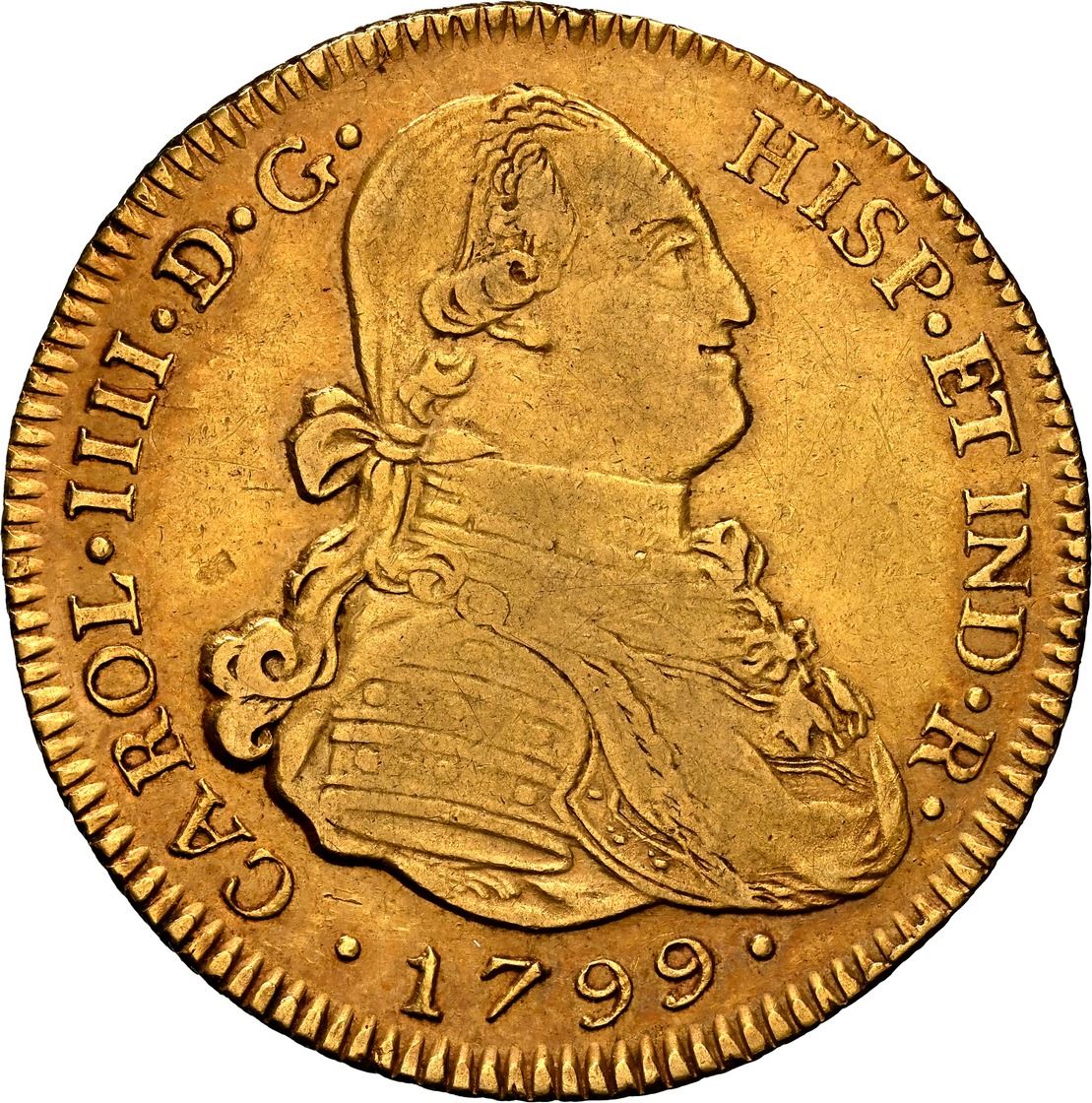 BOLIVIA, Potosí, gold bust 4 escudos, Charles IV, 1799 PP, rare, NGC XF 40, ex-Almenara.
