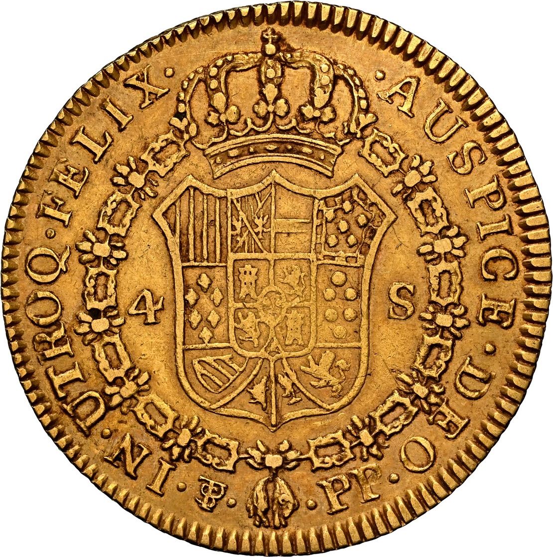 BOLIVIA, Potosí, gold bust 4 escudos, Charles IV, 1799 PP, rare, NGC XF 40, ex-Almenara. Janson-73.11; Cal-1530; Fr-15; KM-80. Deep gold color with traces of toning and luster at the full rims, just light honest wear, second finest in NGC census. Pedigreed to the Almenara Collection (stated on label).