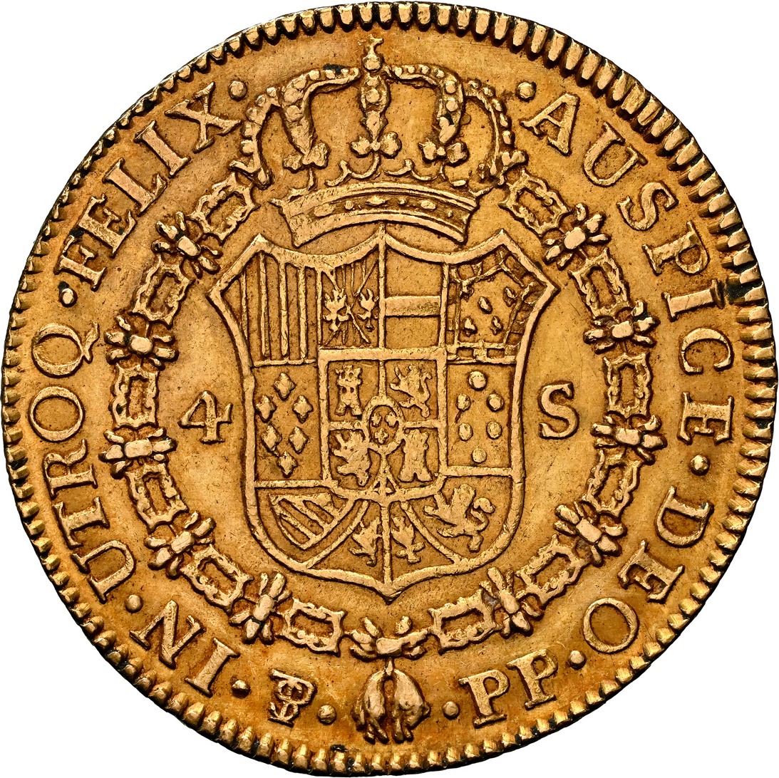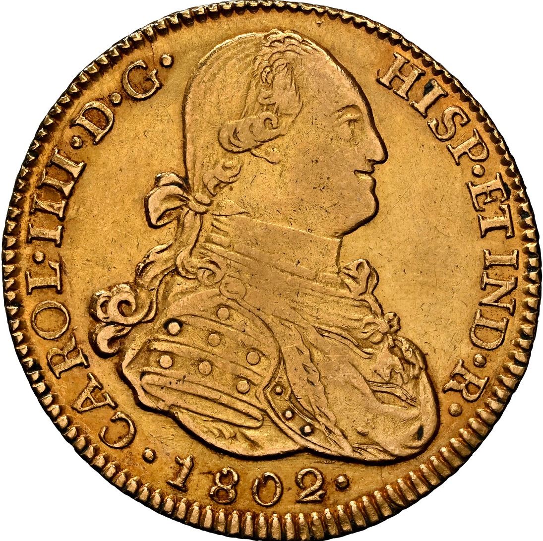 BOLIVIA, Potosí, gold bust 4 escudos, Charles IV, 1802 PP, rare, NGC AU 50, finest known in NGC cens