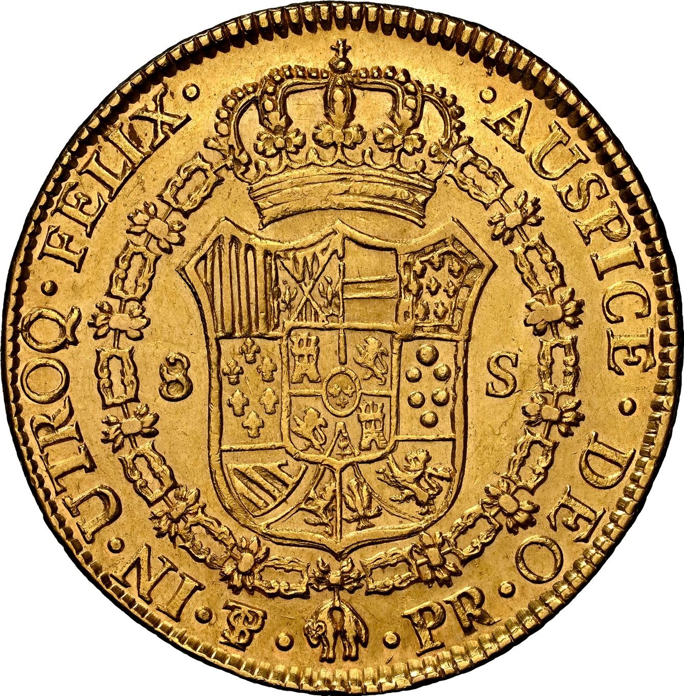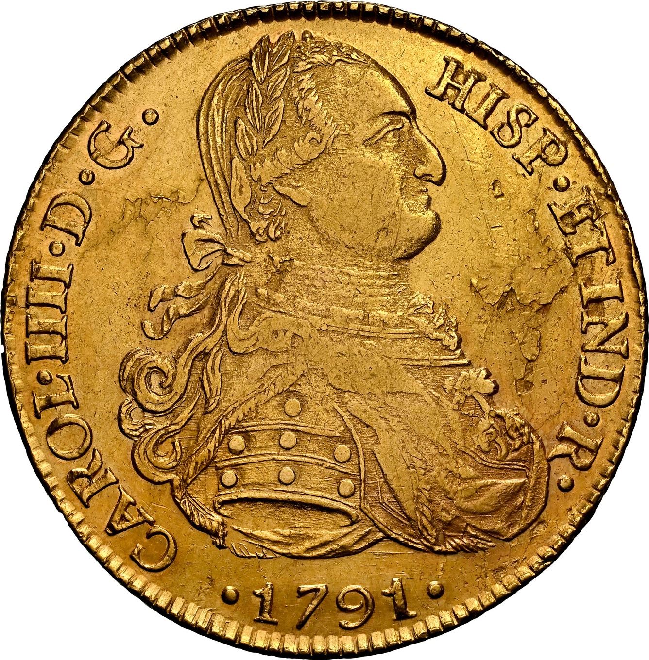 BOLIVIA, Potosí, gold bust 8 escudos, Charles IV, 1791 PR, laureate bust, very rare, NGC AU 53, ex-A