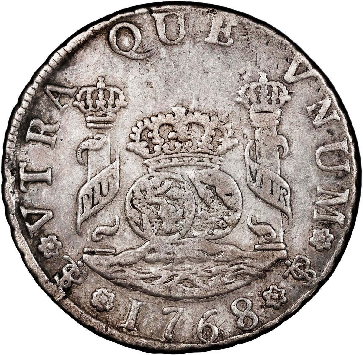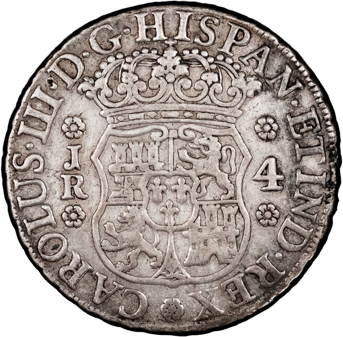 BOLIVIA, Potosí, pillar 4 reales, Charles III, 1768/7 JR, very rare, PCGS VF details / cleaned, ex-P