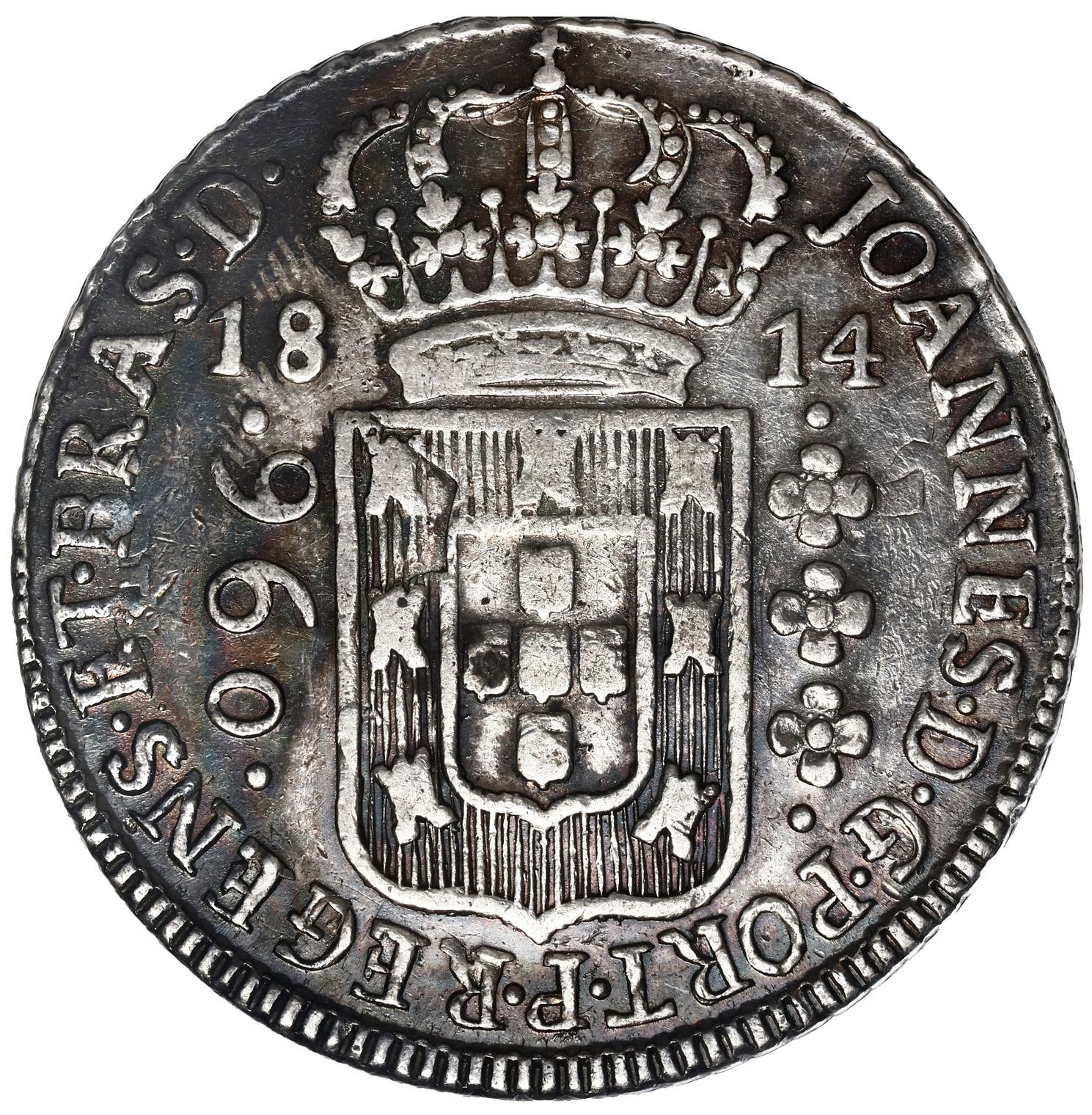 BRAZIL, Bahia, 960 reis, João, Prince Regent, 1814-B, struck over a Spanish colonial bust 8 reales o