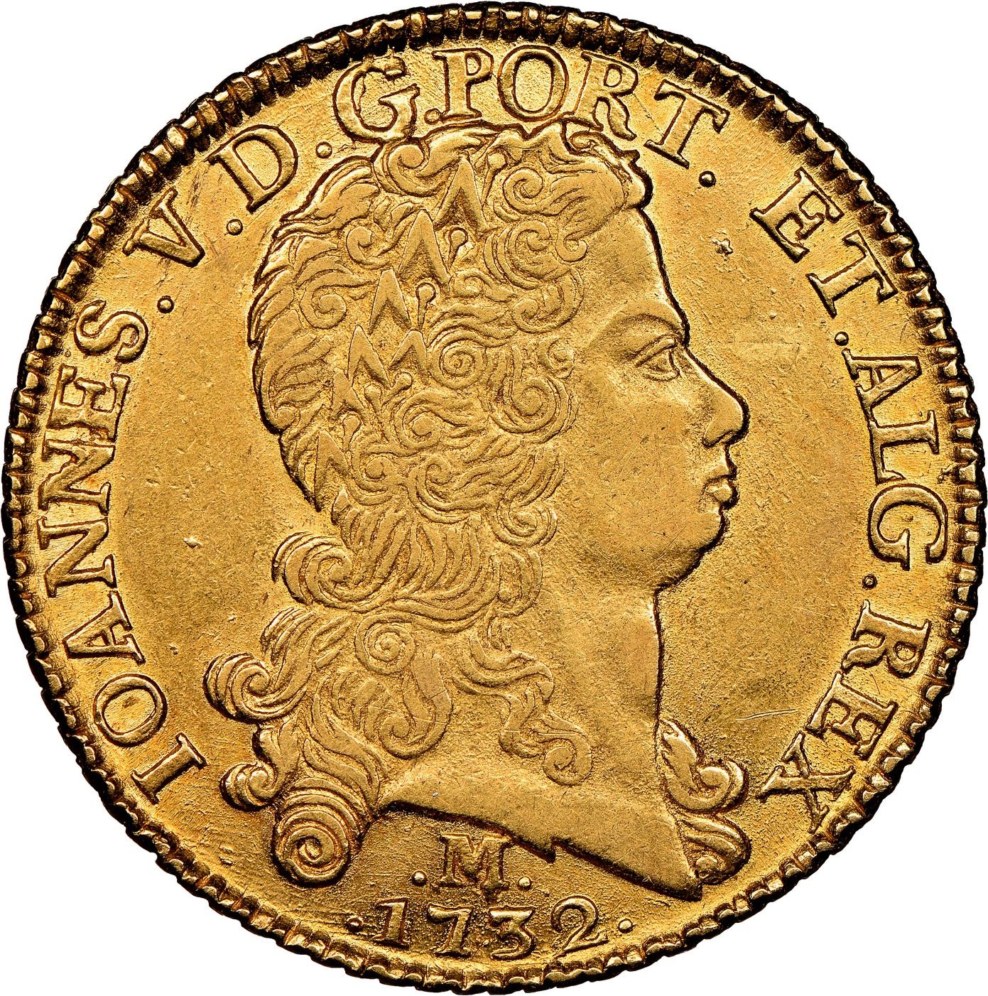BRAZIL, Minas, gold dobra (12800 reis), João V, 1732-M, NGC AU 58.