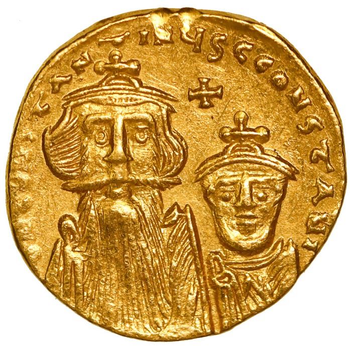 BYZANTINE EMPIRE, Constantinople, AV solidus, Constans II, with Constantine IV, 641-668 AD.
