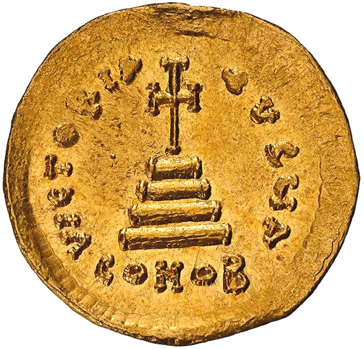BYZANTINE EMPIRE, uncertain eastern military mint, AV solidus, Heraclius and Heraclius Constantine (613-641 AD), struck 613-616 AD, very rare, NGC MS-star, strike 4/5, surface 5/5. DOC 188a.1-2 var (Alexandria; obv. legend); MIB 771 var (Cyprus?; or eastern military mint; same); Bendall, Jerusalem, fig. 21 var (uncertain eastern military mint?; same); SB 852 var (Jerusalem; same). 4.46 grams. dd NN ҺЄRACLIЧS Єτ ҺЄRA CONST PP AVI above crowned, draped, and bearded bust of Heraclius facing on left, smaller crowned and draped bust of Heraclius Constantine on right, cross above / VICTORIA AVςЧA flanking cross potent on three steps; CONOB in exergue. Bendall (p. 317) notes “There also exist other extremely rare solidi of Heraclius and Heraclius Constantine struck at this time, all in the east in the experience of the writer, which are illustrated here (figs. 18-21), which can surely only indicate that in the troubled times between 613 and 616/8 there may have been a number of ephemeral mints connected with Heraclius’ campaigns in the east.”. NGC #3761048-004.