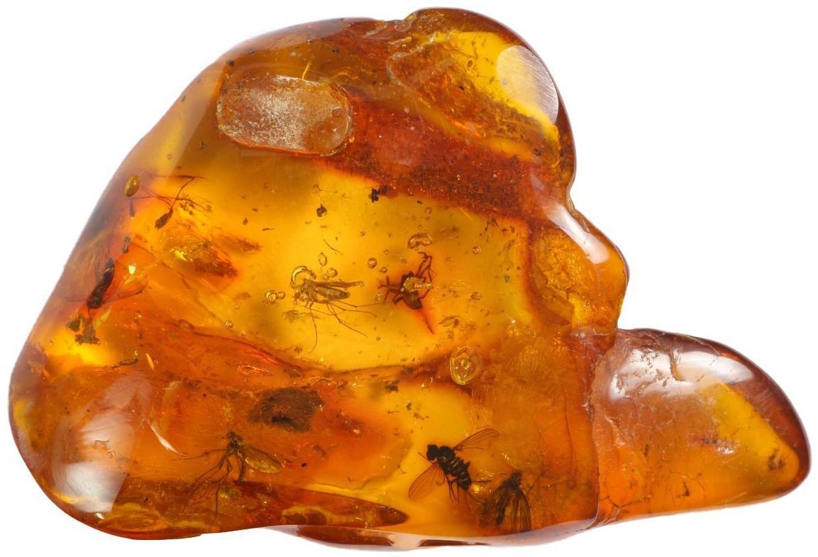 Baltic amber with preserved spider and flies, approx. 44 million years old, from Kaliningrad, Russia