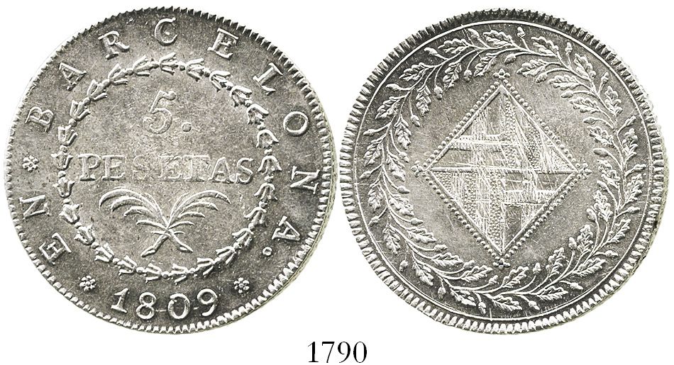 Barcelona, Spain, Jose Napoleon, 5 pesetas, 1809.
