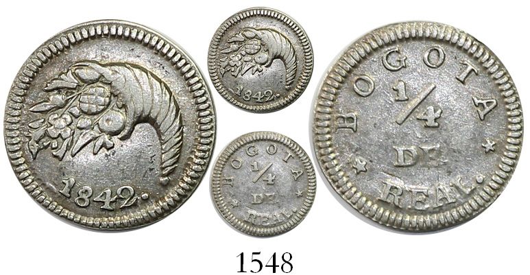 Bogota, Colombia, 1/4 real, 1842.